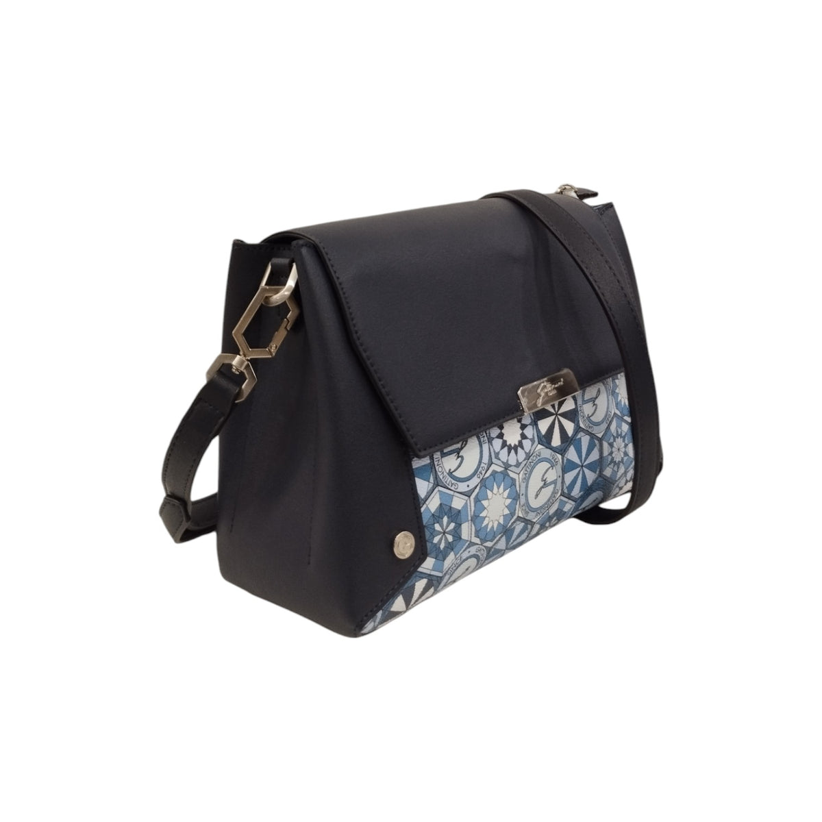 Gattinoni Roma Borsa a Tracolla Donna con 3 Scomparti in Stampa Teodosia Blu e Chiusura con Bottone