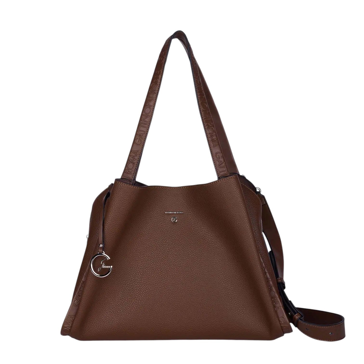 Gattinoni Roma Borsa a Spalla Donna Megan in Ecopelle Marrone con Doppio Manico Logato