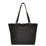 La Shopping Bag firmata Gattinoni Roma, modello reversibile realizzata in ecopelle nera è caratterizzata da chiusura con piccolo moschettone. All'interno è presente una pochette in coordinato con chiusura zip, e internamente foderata in tessuto, dove troviamo una piccola taschina per oggetti più piccoli con zip. Tracolla in dotazione, applicabile tramite moschettoni.