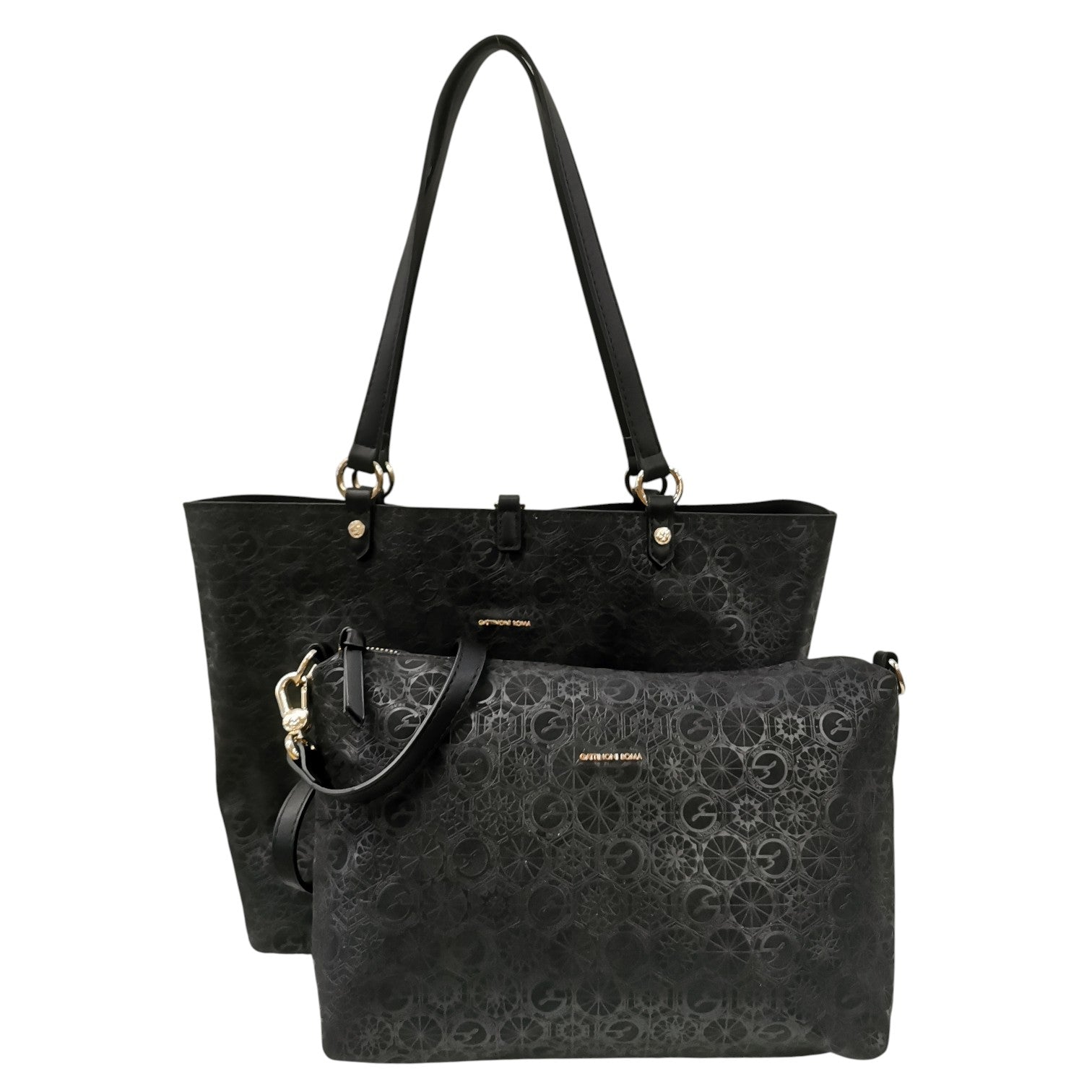 Gattinoni Roma Borsa a Spalla Donna Teodosia Reversibile Casual in Ecopelle Nera con Pochette