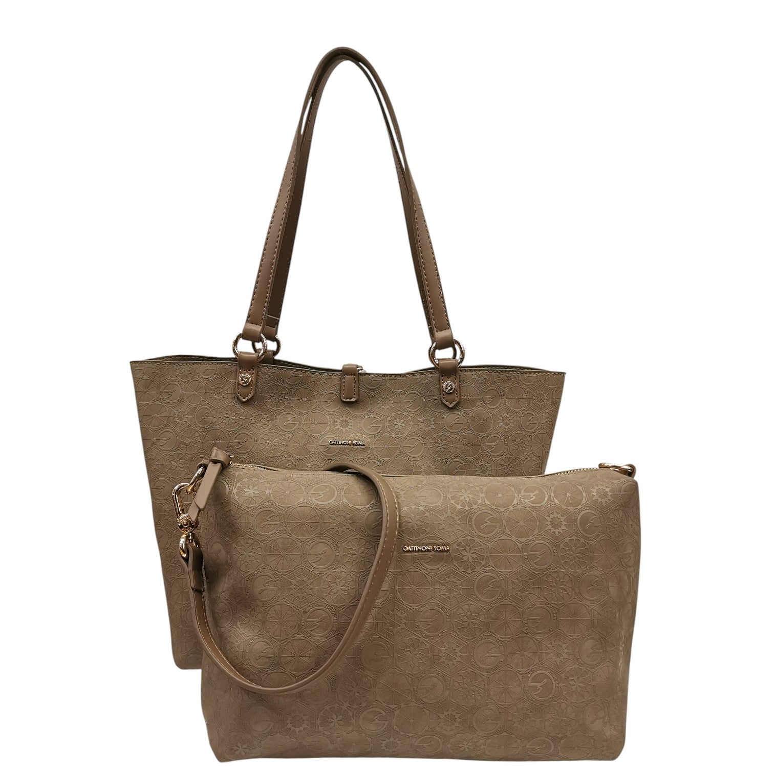 Gattinoni Roma Borsa a Spalla Donna Teodosia Reversibile Casual in Ecopelle Tortora con Pochette