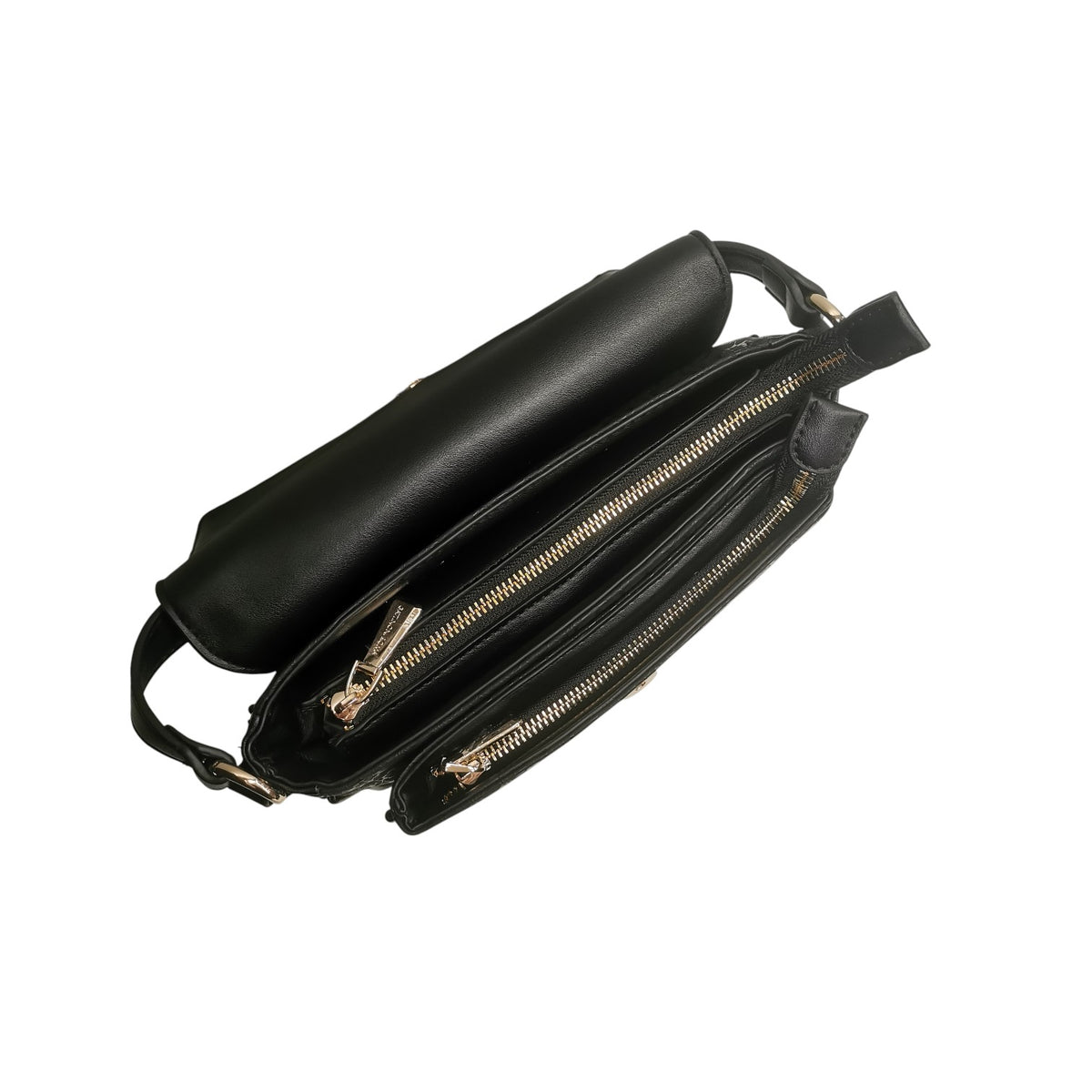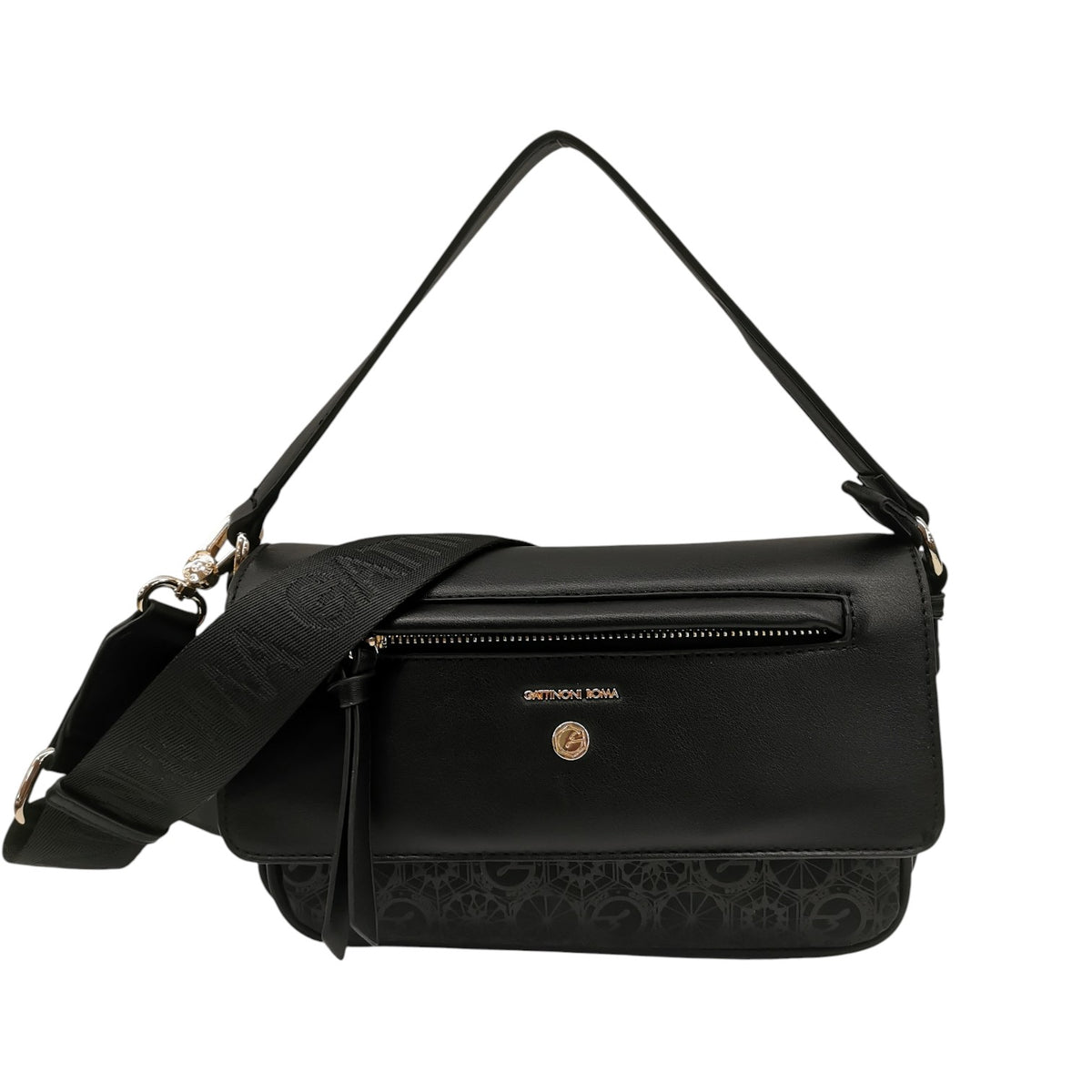 Gattinoni Roma Borsa a Tracolla Donna Teodosia Casual in Ecopelle Nera con Tasca Frontale