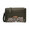 La Borsa a tracolla firmata Gattinoni Roma, della Linea Teodosia realizzata in ecopelle marrone è caratterizzata da targhetta logo e da iconica fantasia Teodosia, dettagli metallici. All'interno presenta tre scomparti di cui quello centrale chiuso con zip. Versatile si adatta perfettamente alla donna moderna che non compromette lo stile nella praticità quotidiana.
