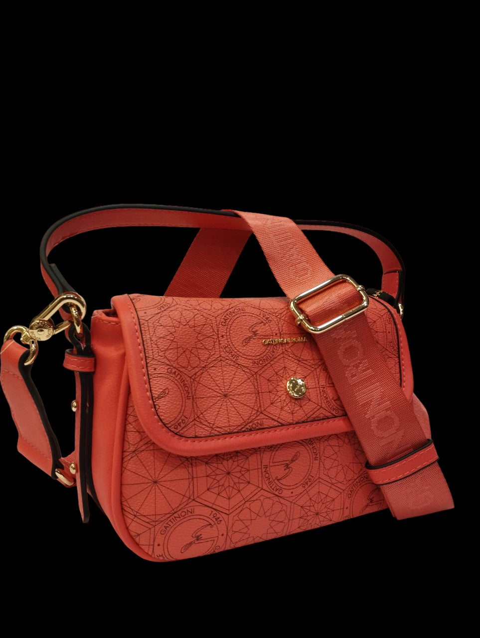 La Borsa a tracolla firmata Gattinoni Roma, realizzata in similpelle dispone di tracolla lunga a nastro logata regolabile e removibile.