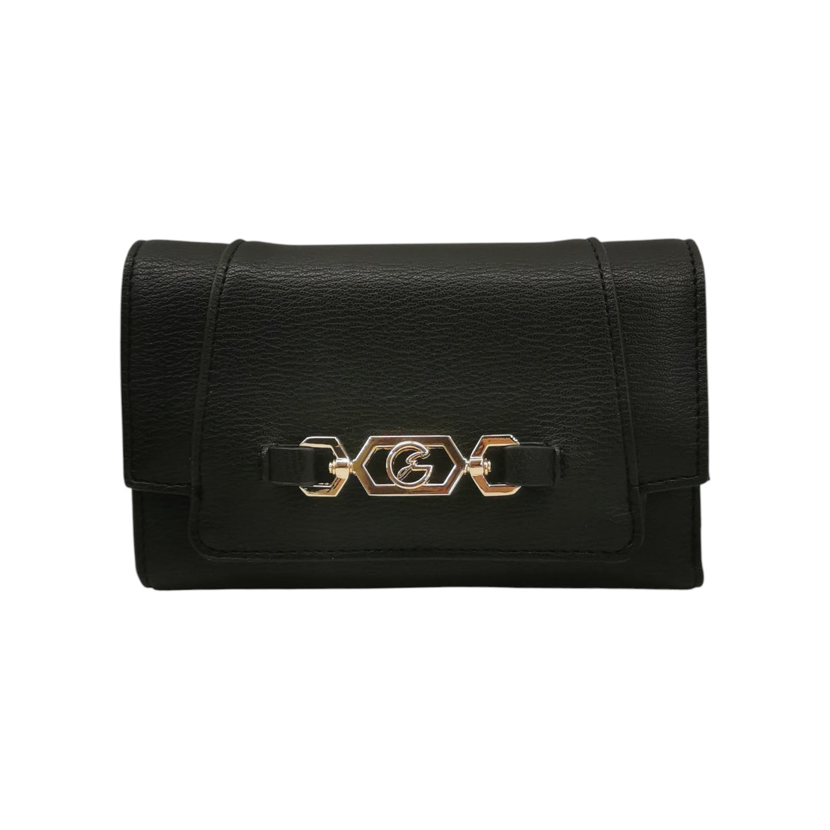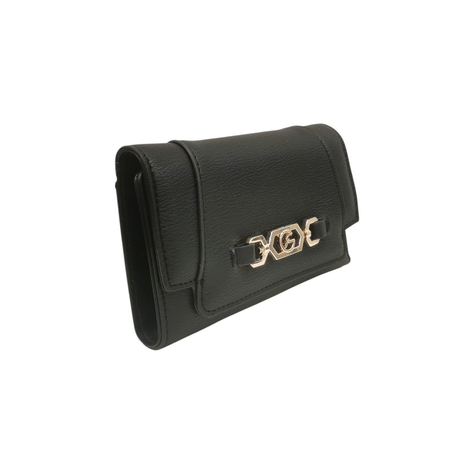 Gattinoni Roma Portafoglio Donna in Ecopelle Nera con Dettaglio Oro e Bottone