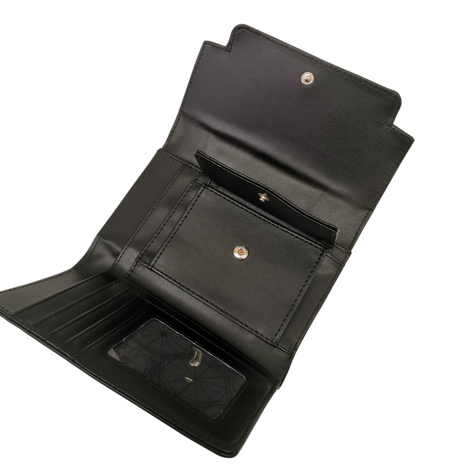 Il Portafoglio firmato Gattinoni Roma, realizzato in ecopelle nera è caratterizzato da logo frontale oro e si apre a libro con un bottone magnetico, dispone all'interno di 3 scomparti portatessere, una tasca per monete con bottone, e scomparto per le banconote.