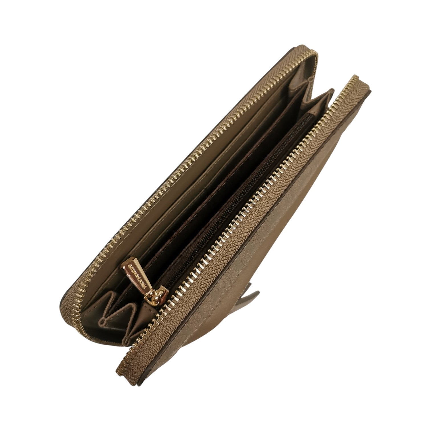 Il Portafoglio firmato Gattinoni Roma, realizzato in ecopelle tortora è caratterizzato da stampa teodosia e da zip frontale, si apre con la zip di cui all'interno presenta scomparti per banconote, tessere e un taschino con zip per le monetine.