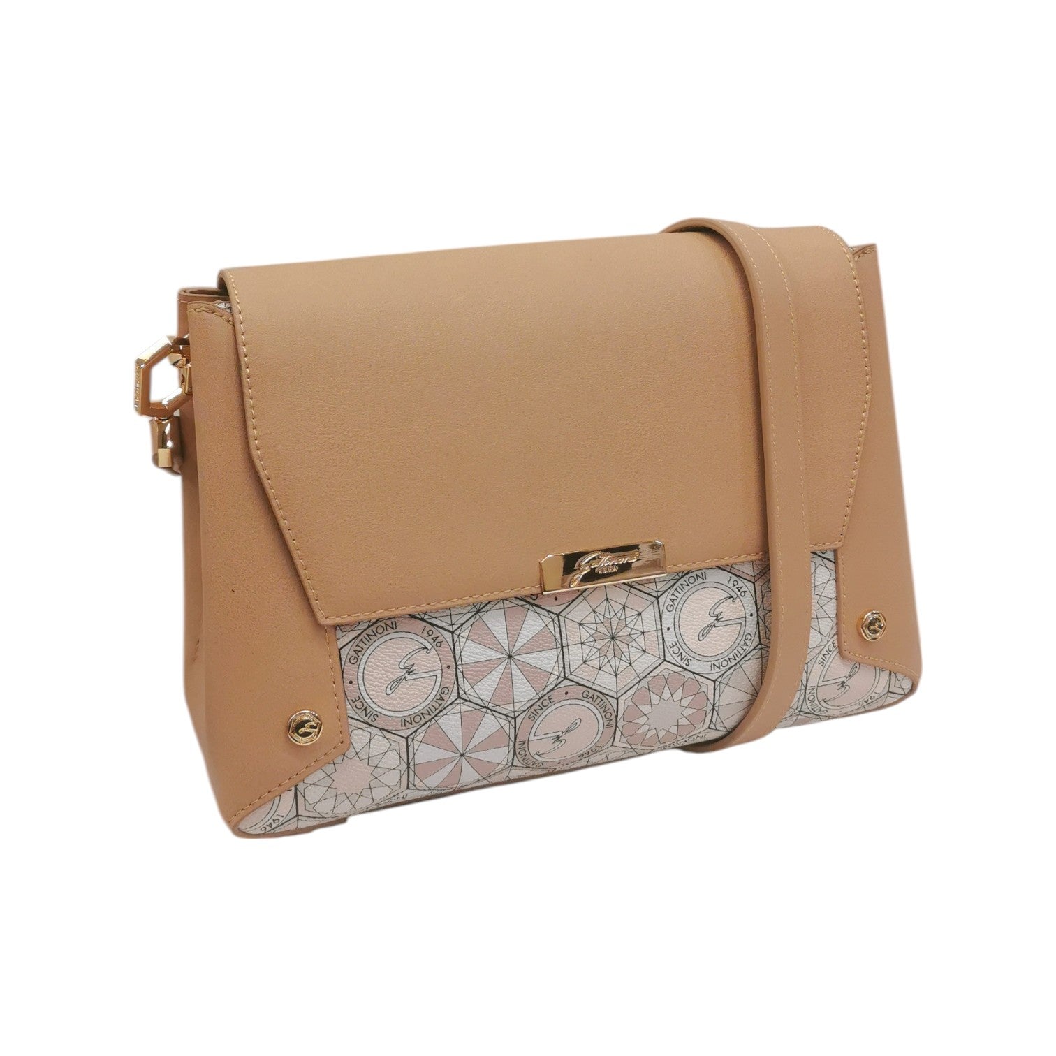 Gattinoni Roma Borsa a Tracolla Donna con 3 Scomparti in Stampa Teodosia Nudo e Chiusura con Bottone