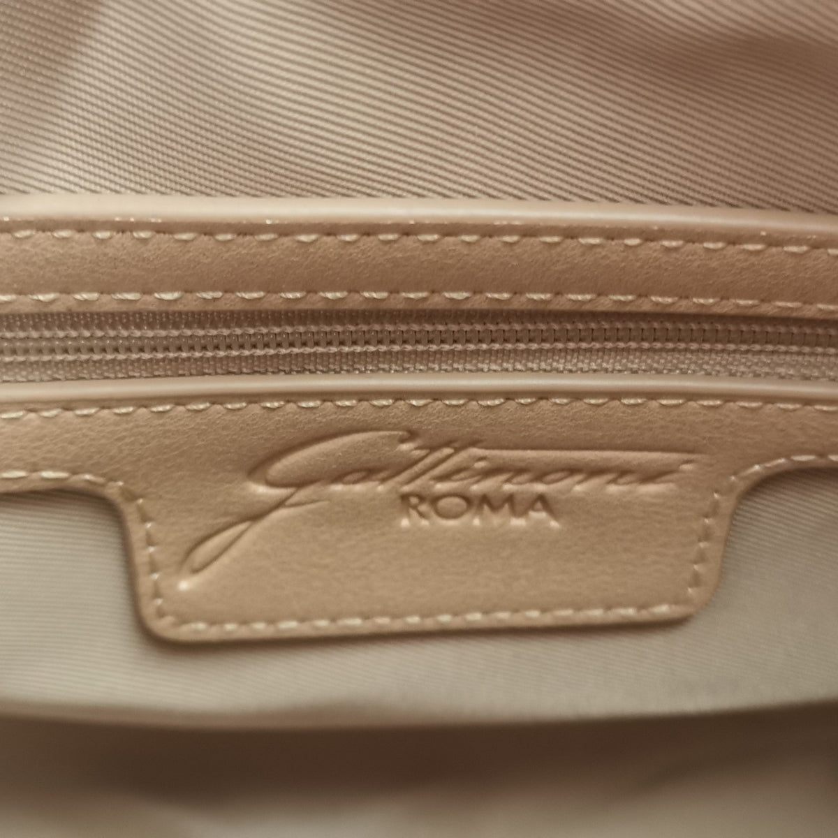 L'interno è foderato in tessuto logato Gattinoni Roma, 1 scomparto centrale con tasche porta oggetti di cui 1 tasca con zip, 2 scomparti aperti in ecopelle.