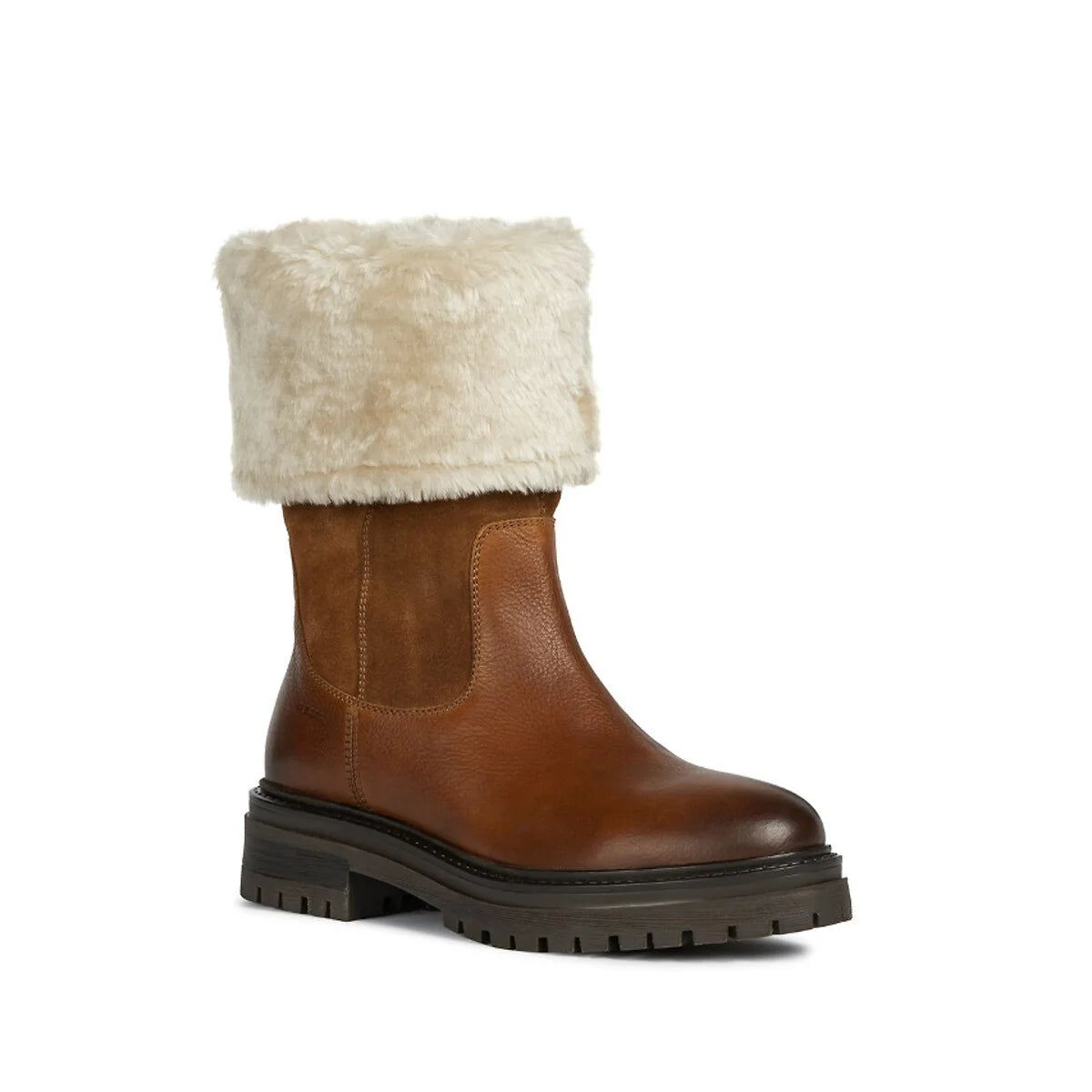 Geox Stivaletto cuoio in pelle con pelliccia