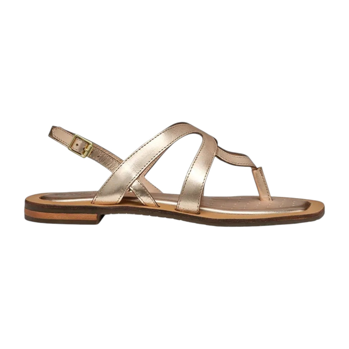 L'Infradito firmato Geox, realizzato in pelle laminata dorata è caratterizzato da un comodo cinturino regolabile e grazie ad una suola a tre strati con un sistema di perforazioni traspiranti, migliora la ventilazione, garantendo così la salute dei piedi e assicurando il comfort di utilizzo delle scarpe.