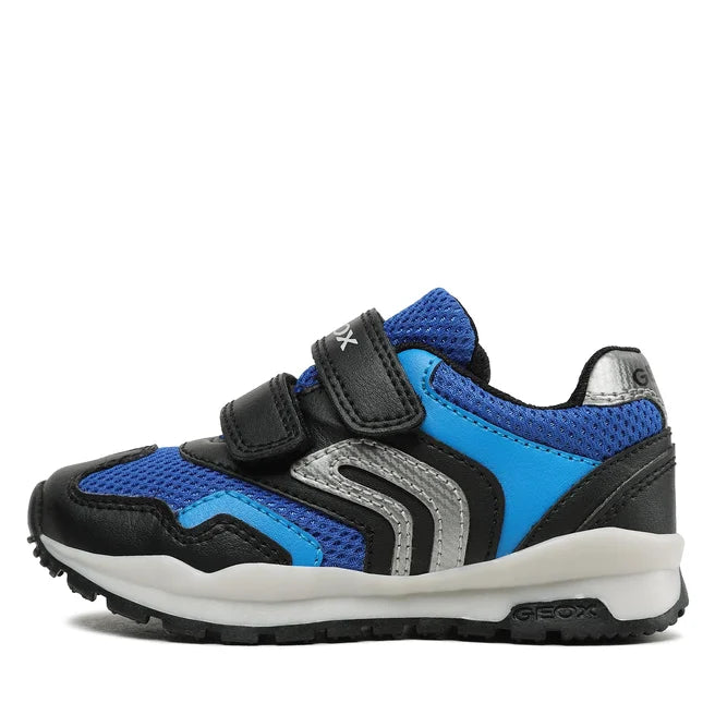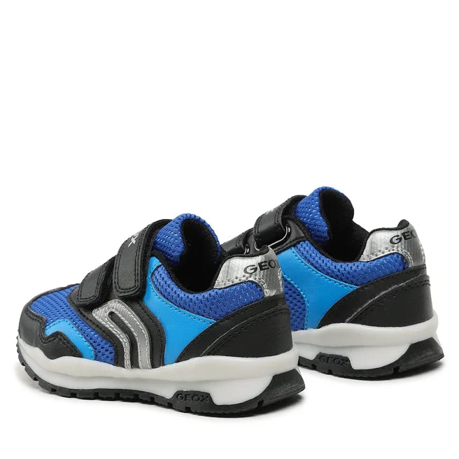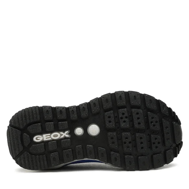 La Sneakers firmata Geox, estetica running in stile retrò, realizzata in tessuto ed ecopelle modello traspirante esaltata da un livello superiore di praticità e comfort. Il versatile design bluette con inserti neri si adatta impeccabilmente alla vita di tutti i giorni, abbinandosi in maniera ottimale anche alla divisa scolastica.
