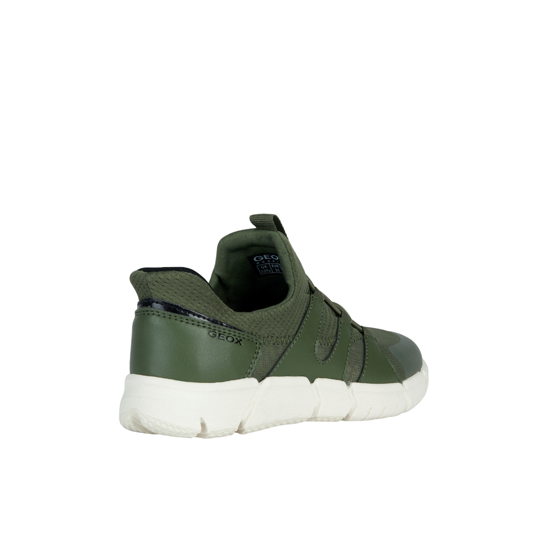 Lo Slip On firmato Geox, linea junior qui proposta in questa versione verde militare, realizzata in tessuto tecnico, flexyper sfoggia un look active e moderno, che si abbina agli outfit quotidiani. La suola flessibile e ammortizzata assicura comfort e supporto da mattina a sera, per correre e giocare in libertà.