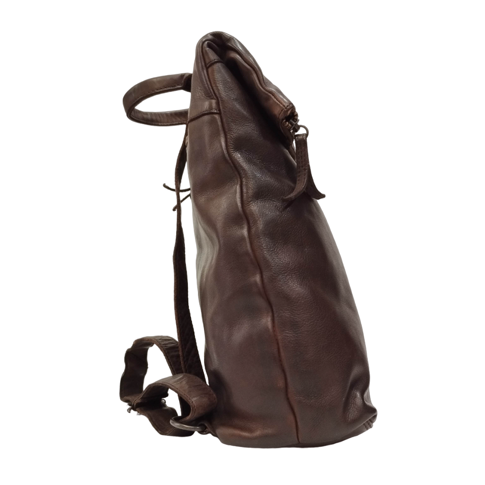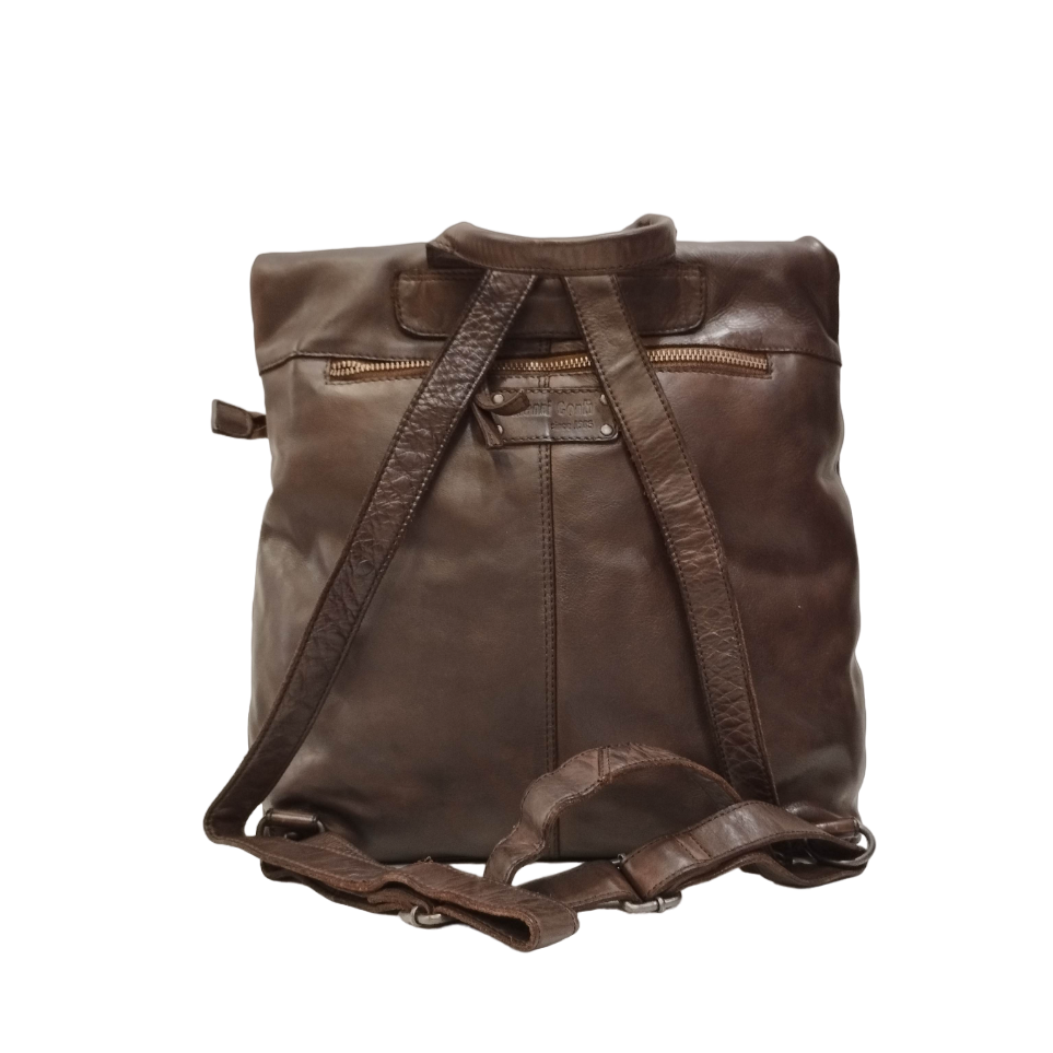 Lo Zaino firmato Gianni Conti, dal grintoso effetto vintage è caratterizzato da una tasca posteriore con zip e da una chiusura con pattina, zip e moschettone. Lo Zaino si ripiega nella parte superiore consentendo di mantenere la chiusura in posizione utilizzando l'anello di metallo.