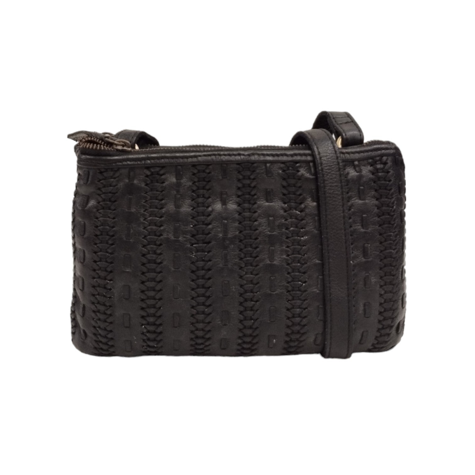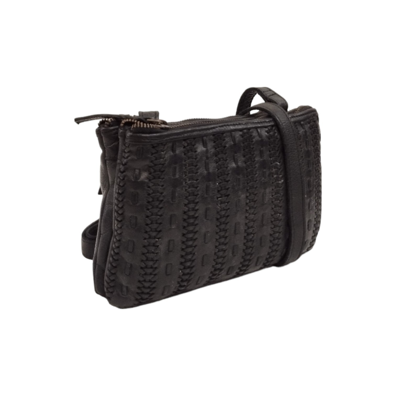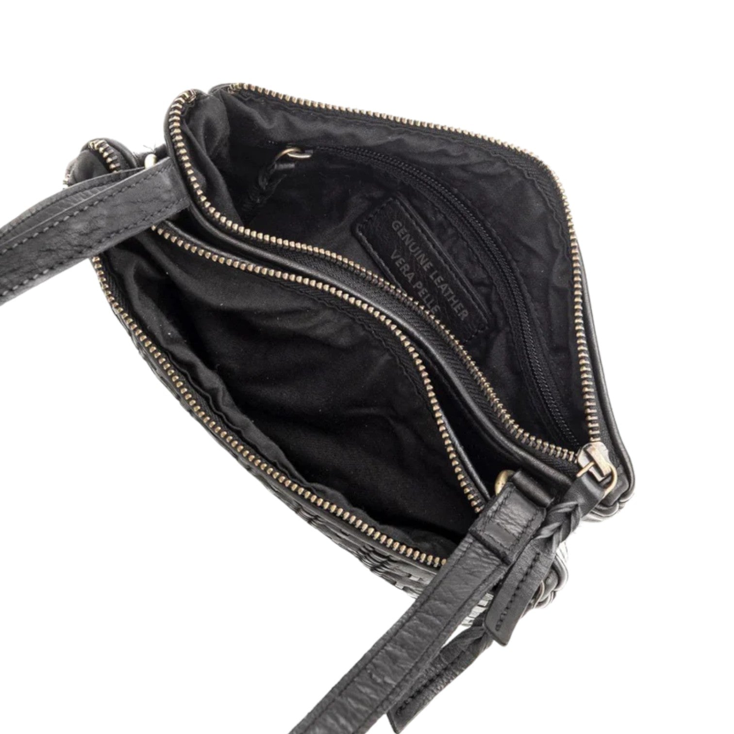 La Tracolla firmata Gianni Conti, della Linea Clodia realizzata in pelle è caratterizzata da una lavorazione intrecciata e da tre scomparti di cui due con zip e uno con bottoncino magnetico, l'interno è foderato in tessuto con una tasca con zip.