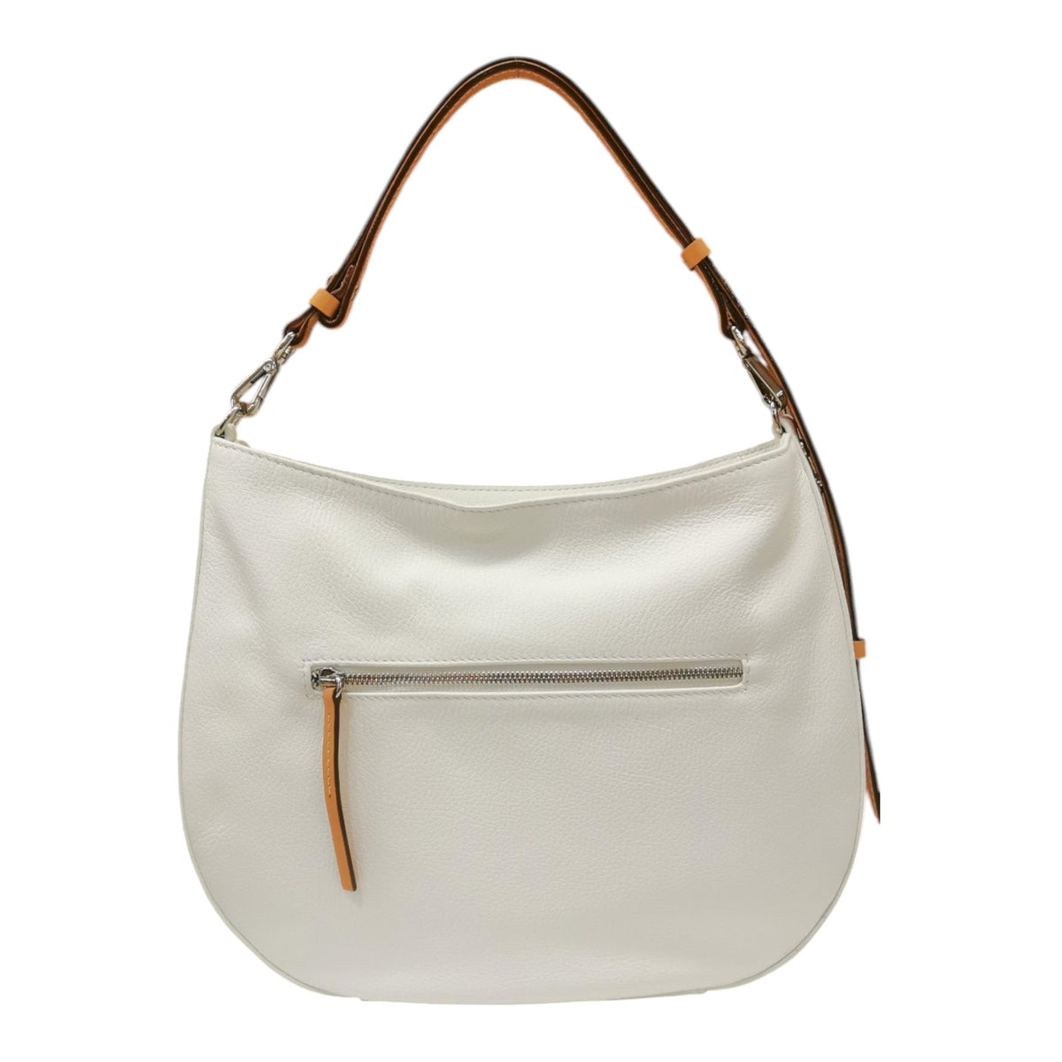 La Borsa a spalla firmata Gianni Conti, della Linea Valeria realizzata in morbida pelle nella variante bianca è caratterizzata da tasca posteriore chiusa con zip e da manico removibile per portarla a spalla o da tracolla regolabile e removibile, l'interno è foderato in tessuto di cui dispone di tasca con zip e aperta.