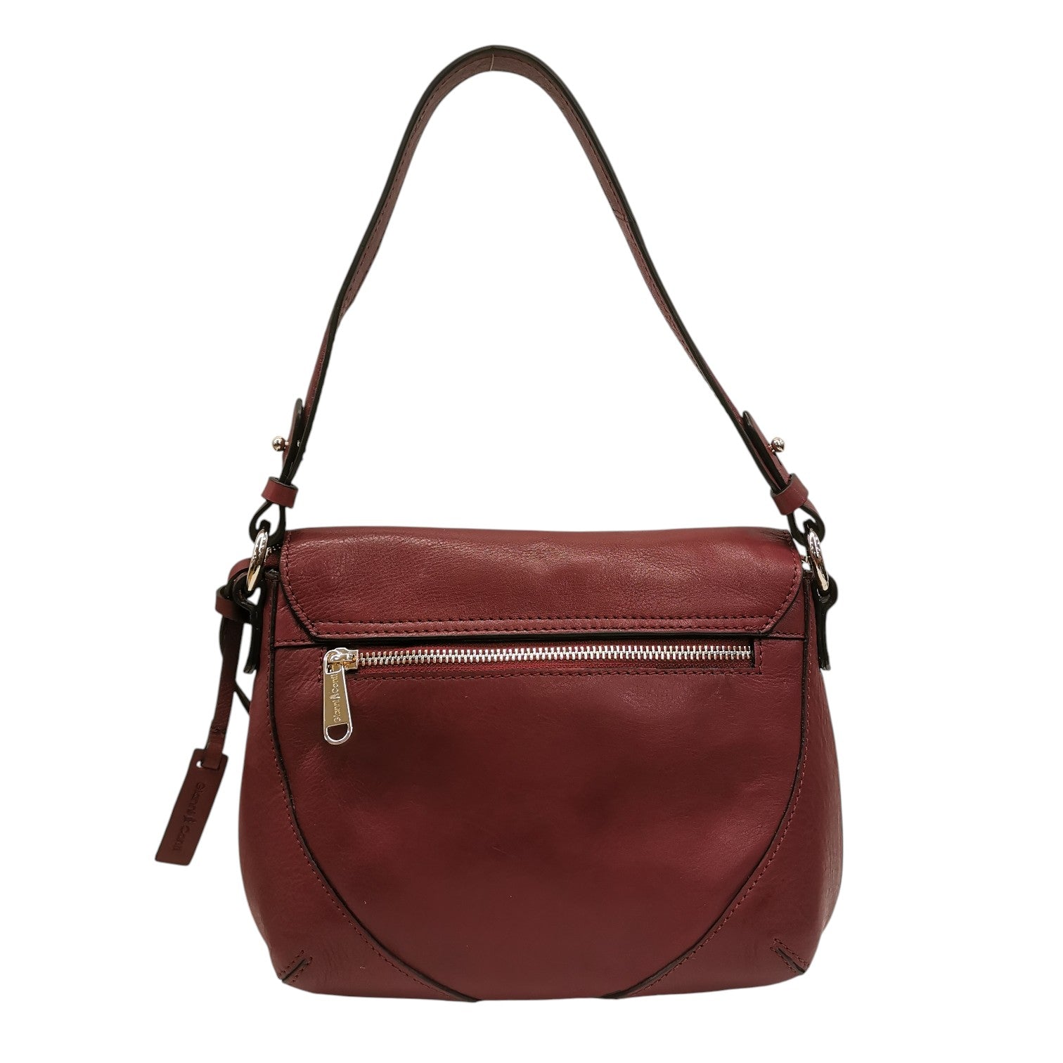 Gianni Conti Borsa a Spalla Donna in Pelle Rubino con Accessorio a Foglia e Bottoncino