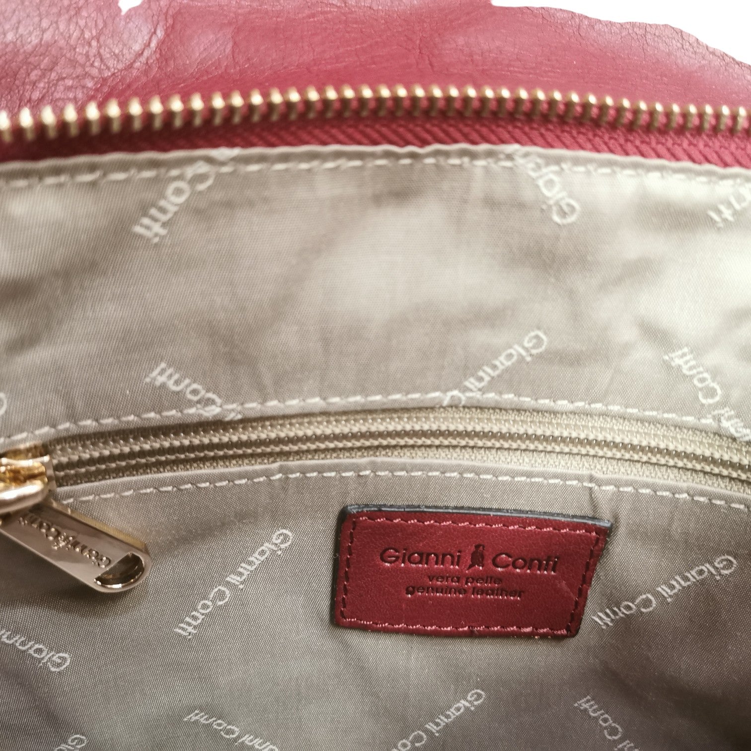 La Borsa a spalla firmata Gianni Conti, realizzata in pelle qui proposta nella variante rubino è caratterizzata da interno foderato in tessuto logato di cui dispone di una tasca con zip, con tracolla removibile ed elegante dettaglio a foglia, questa borsa di Gianni Conti è essenziale per il lavoro o per i viaggi.
