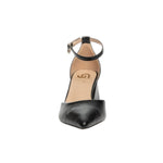La Chanelle firmata Gold&Gold, realizzata in ecopelle nera, è caratterizzata da punta chiusa davanti con soletta in vera pelle, con imbottitura di rinforzo nei punti in cui il piede esercita una maggiore pressione, caratteristica che rende la nostra scarpa particolarmente comoda e confortevole da indossare, il tutto su un fondo con tacco geometrico alto 6,5cm.