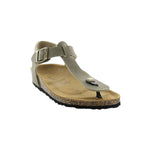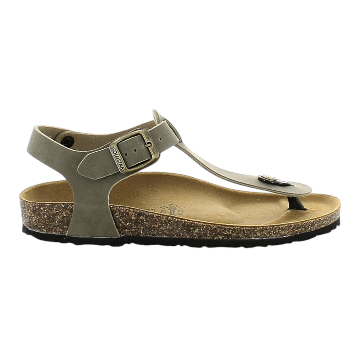 L'Infradito firmato GoldStar, realizzato in ecopelle con cinturino alla caviglia regolabile, fondo in gomma e sottopiede in pelle. Il plantare anatomico garantisce una buona stabilità del piede, anche grazie al supporto sull' arco plantare. Il rialzo per l'appoggio delle dita offre loro una naturale posizione; lateralmente invece, il rialzo serve per il contenimento del piede e per un maggior comfort ed equilibrio.