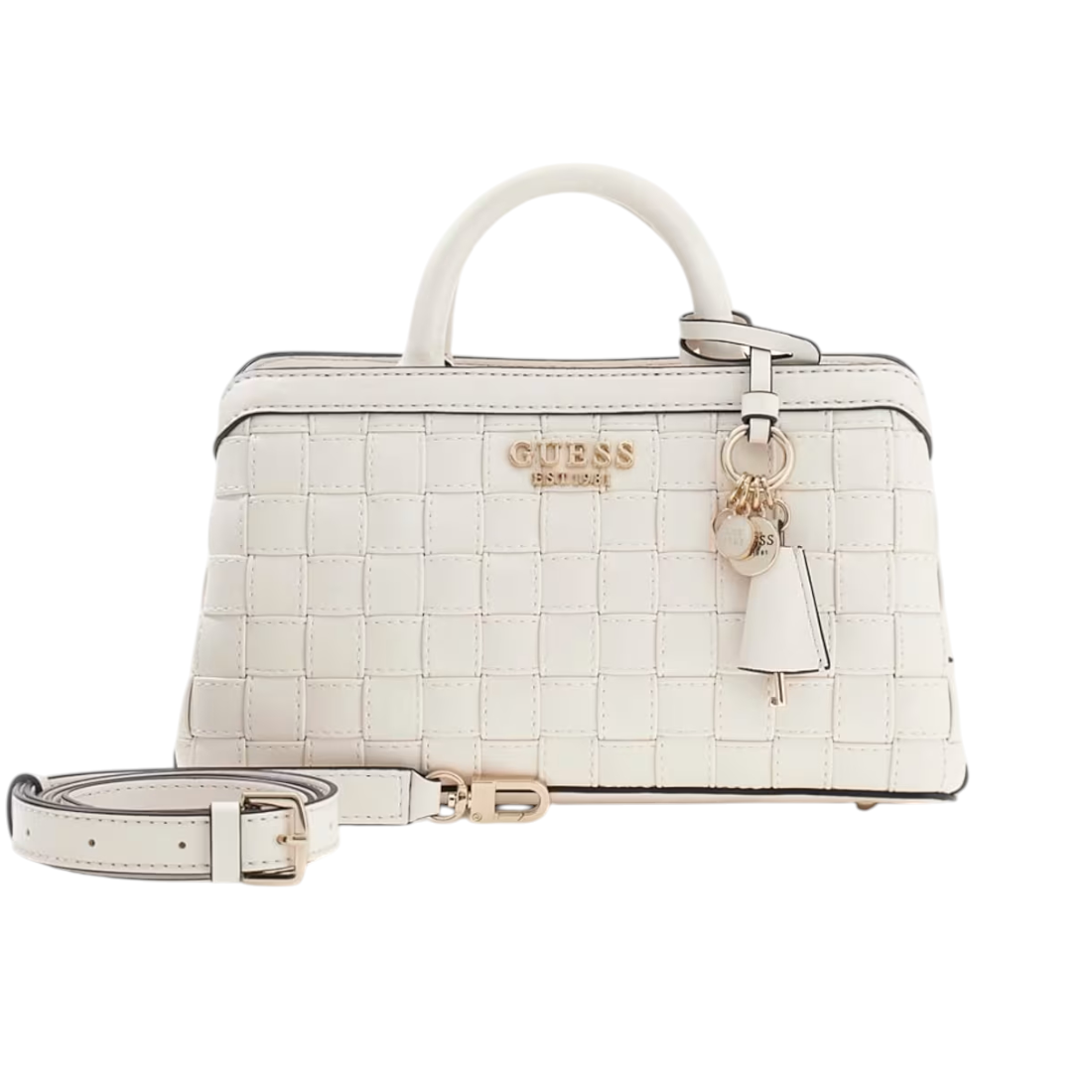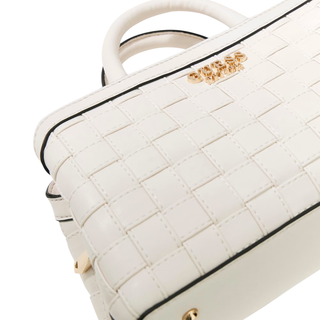 Guess Borsa a Mano Donna in Ecopelle Bianca Intrecciata Sandria con Tracolla