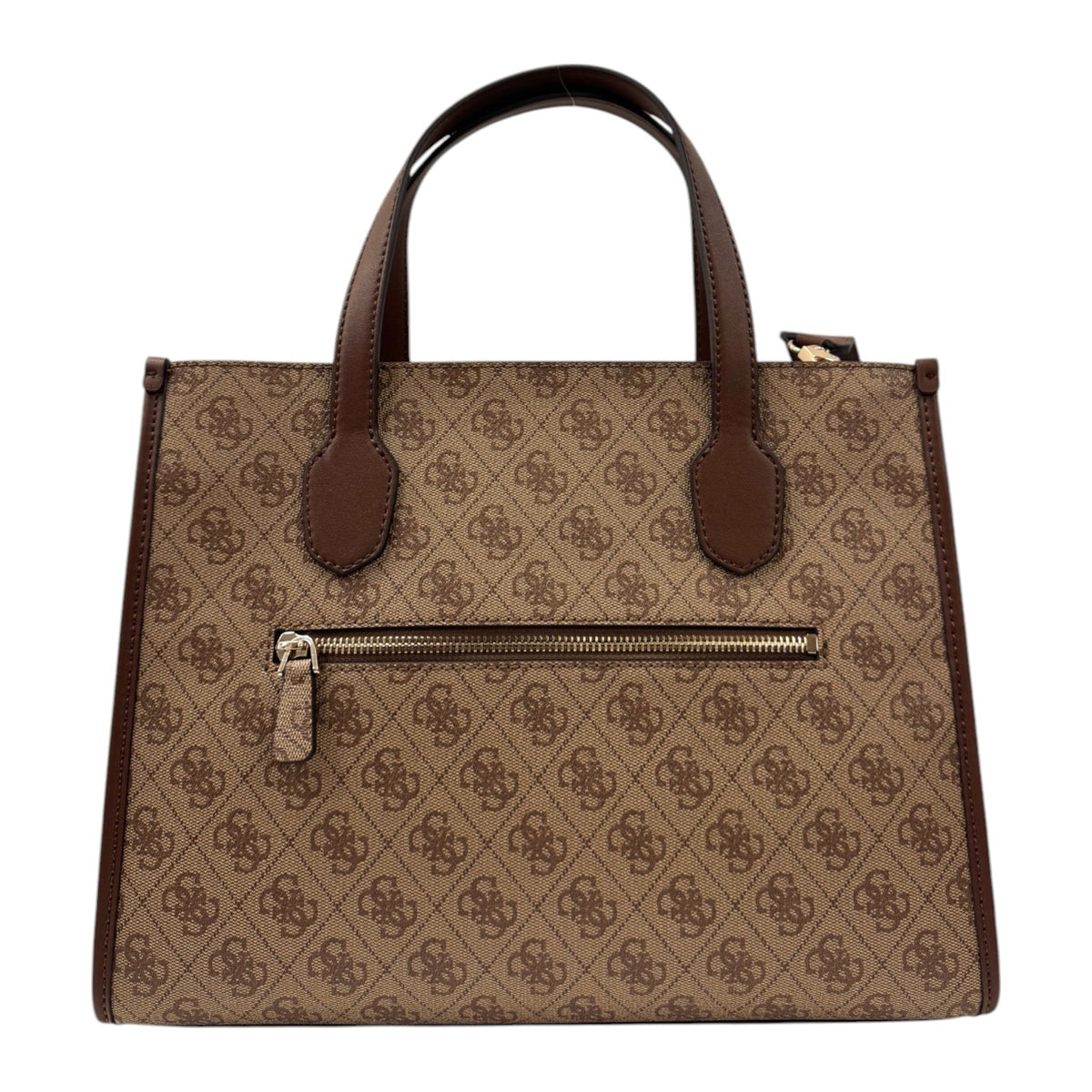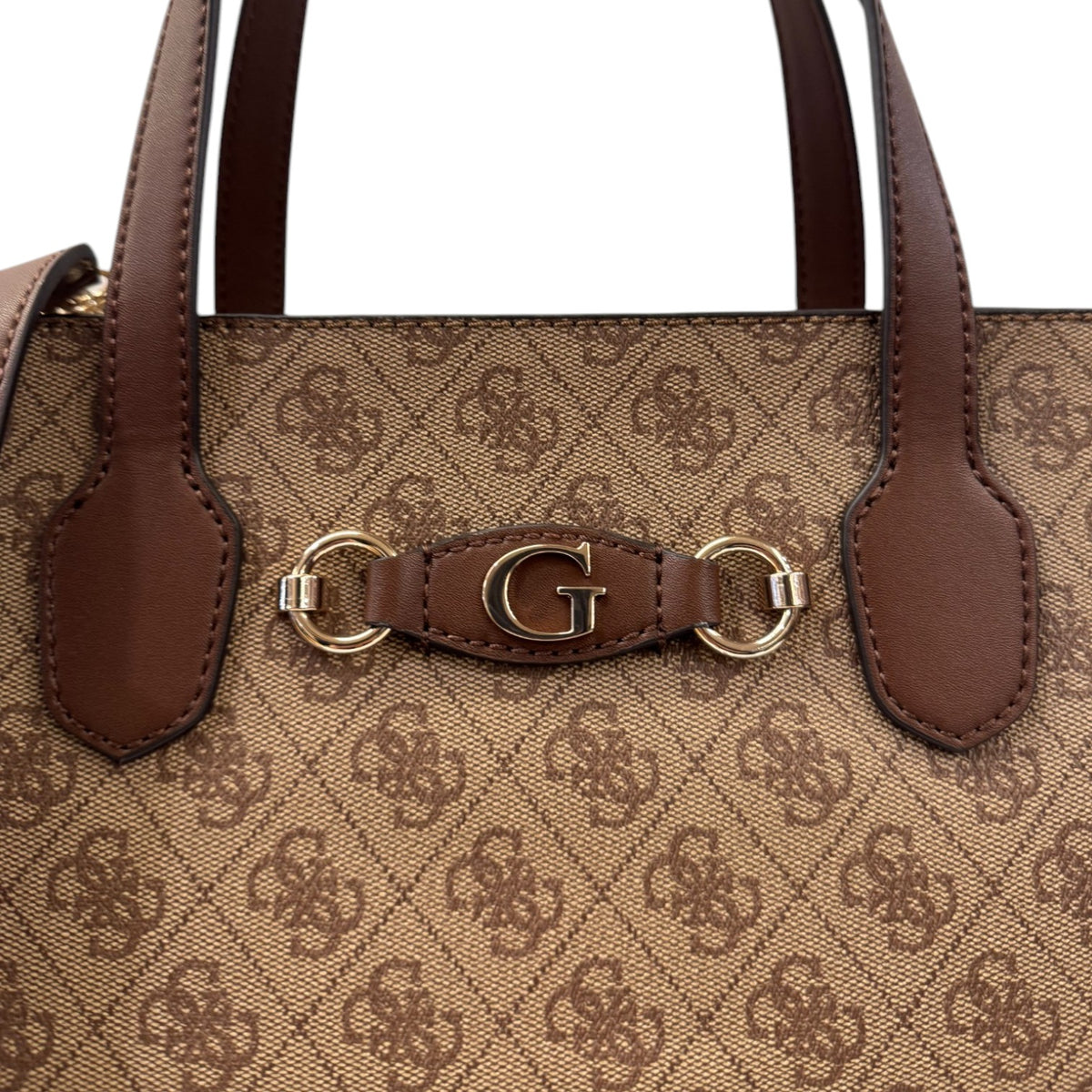 Guess Borsa a Mano Latte Marrone Izzy 4G Logo da Donna