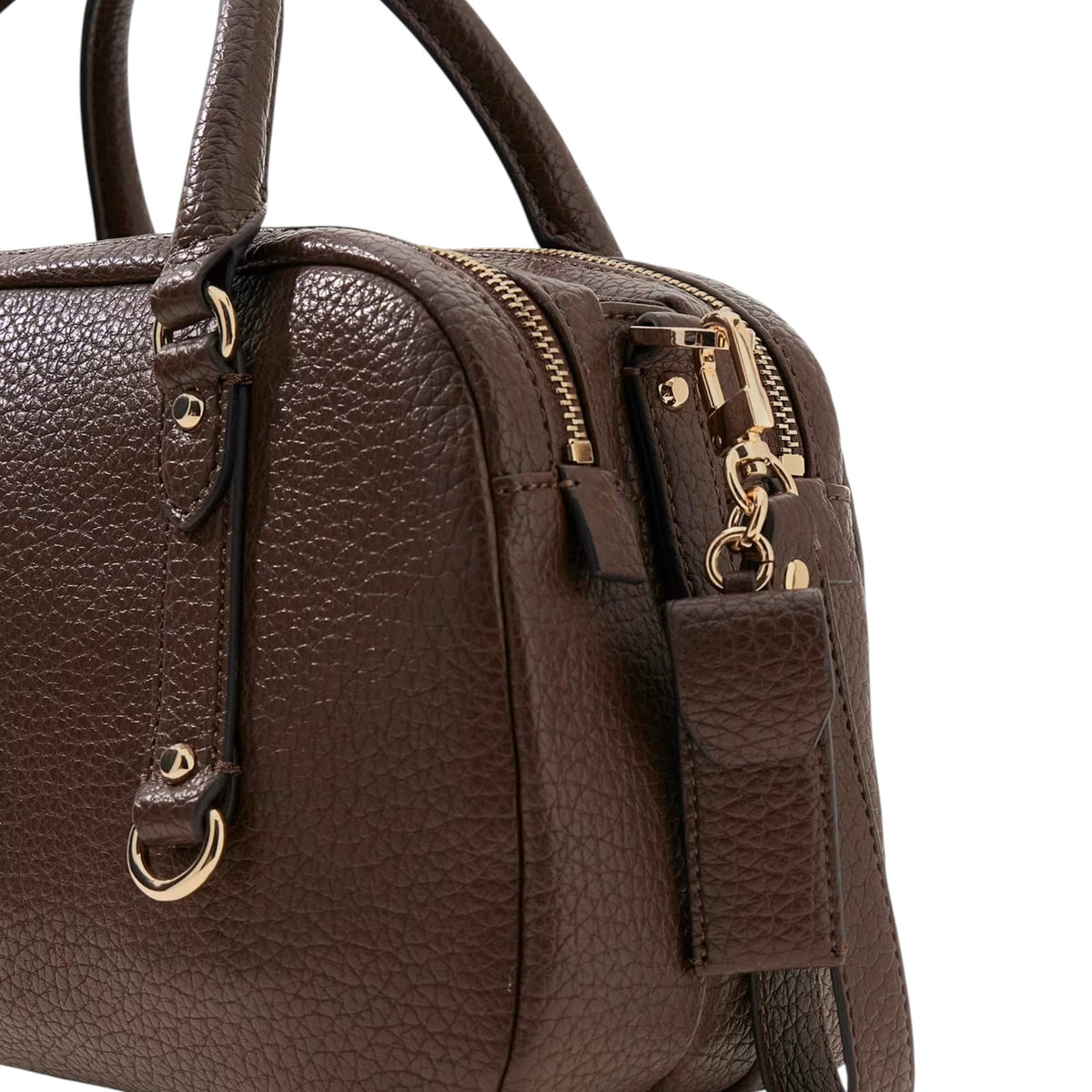La Borsa a mano firmata Guess, realizzata in ecopelle qui proposta nella variante espresso è caratterizzata da ciondoli rimovibili con dettaglio logo e fodera personalizzata con logo, di cui dispone di tre scomparti di cui due chiusi con zip e quello centrale chiuso con bottone.