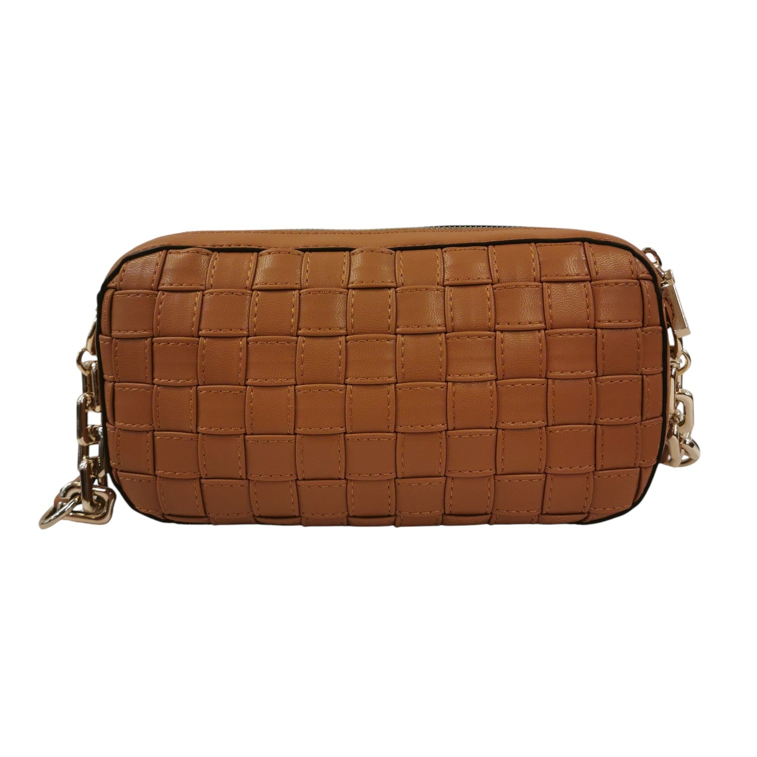 Guess Borsa a Tracolla Donna in Ecopelle Caramello Intrecciata