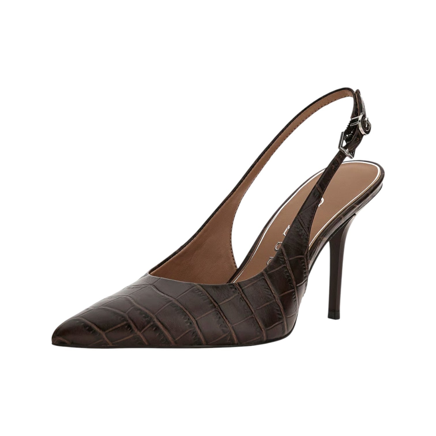 Guess Chanelle Donna in Pelle Cocco Marrone con Tacco a Stiletto Alto 100mm