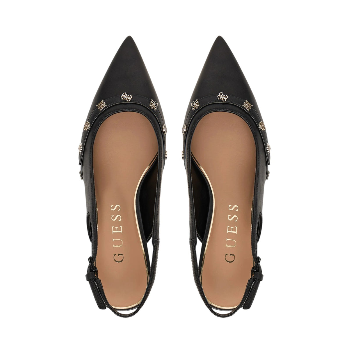 Guess Chanelle Donna in Pelle Nera con Accessori in Metallo 4G Peony e Tacco Alto 70mm