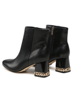 Il Tronchetto firmato Guess, realizzato in morbida pelle presenta un dettaglio catena dorato su tacco quadrato alto 7cm. Tronchetto dotato di sottopiede in pelle e fodera interna in morbido tessuto.