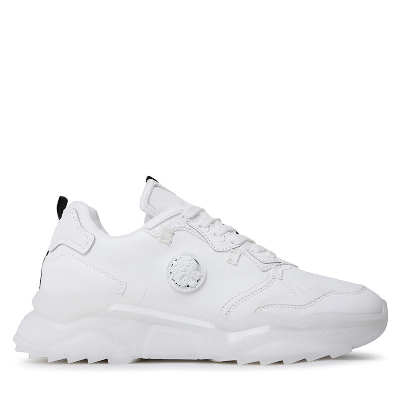 La Sneaker firmata Guess, realizzata in similpelle bianca modello runner caratterizzata da una pratica suola in gomma antiscivolo di altezza di 4,5 cm con logo in rilievo.