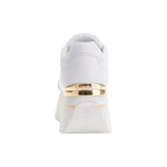 La Sneakers firmata Guess, realizzata in ecopelle qui proposta nella variante bianca è caratterizzata da inserto laminato dorato e da 4G logo impresso, scritta logo laterale, fronte, retro e su suola. Presenta un platform di 6,5cm e sottopiede estraibile e fodera interna in tessuto.