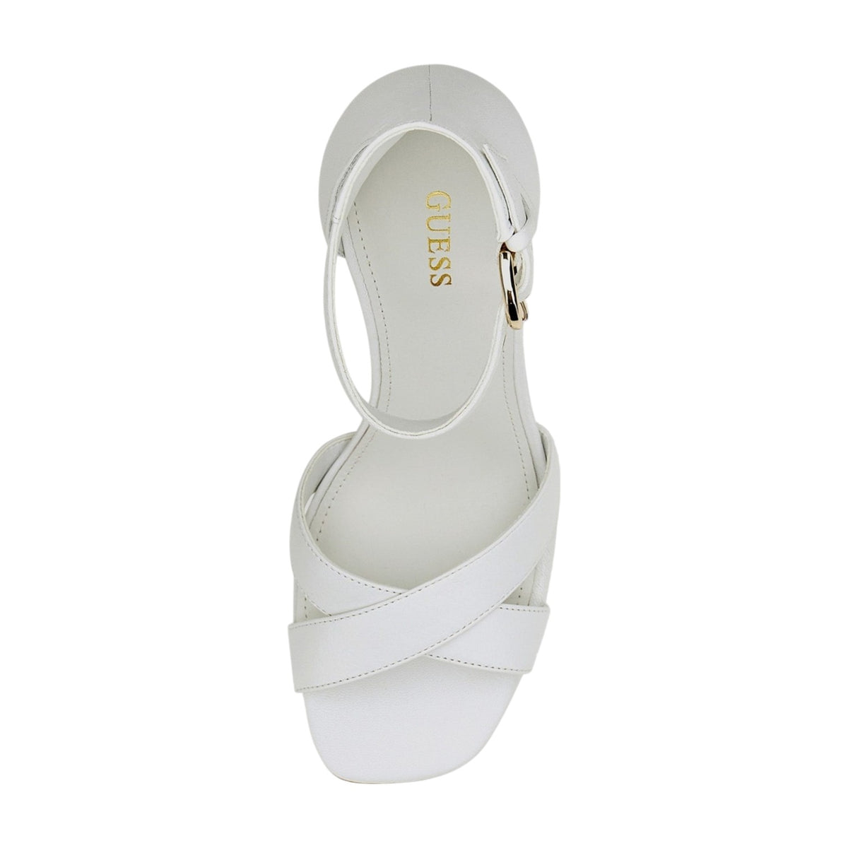 Il Sandalo firmato Guess, realizzato in vera pelle dispone di fascette frontali incrociate.