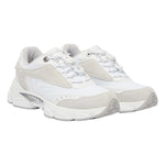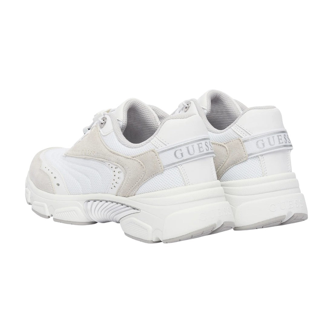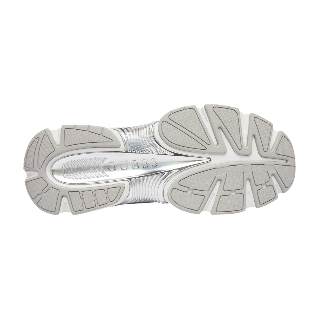 La Sneakers firmata Guess, realizzata in tessuto bianco è caratterizzata da punta leggermente rigida arrotondata e da logo impresso lateralmente. Presenta un dettaglio argento e inserti sintetici. L'interno è foderato in tessuto di cui ha un plantare estraibile. Aggiunge un tocco glamour agli outfit informali e ai look del tempo libero, garantendo massima comodità.