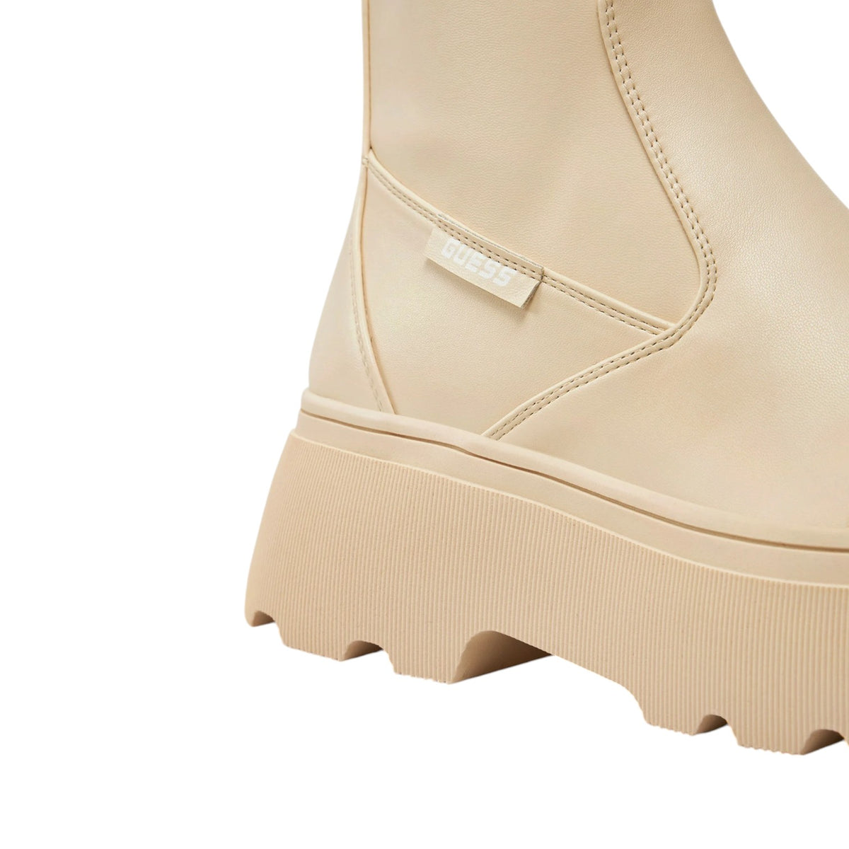 Lo Stivaletto Alto firmato Guess, realizzato in pelle è caratterizzato da una comoda chiusura laterale con zip facilita l'inserimento e la rimozione e da punta rigida arrotondata, la suola platform alta 6cm slancia la figura.