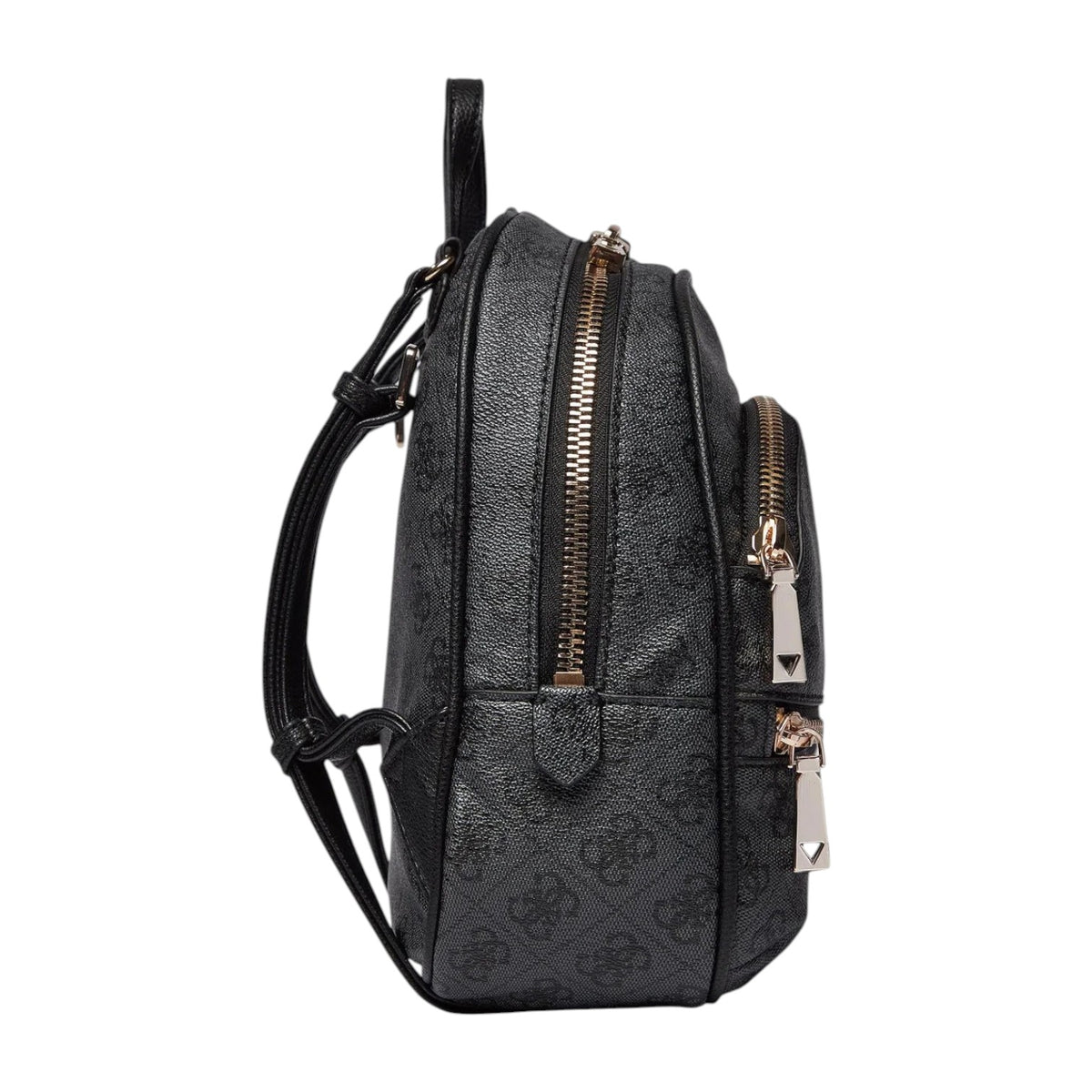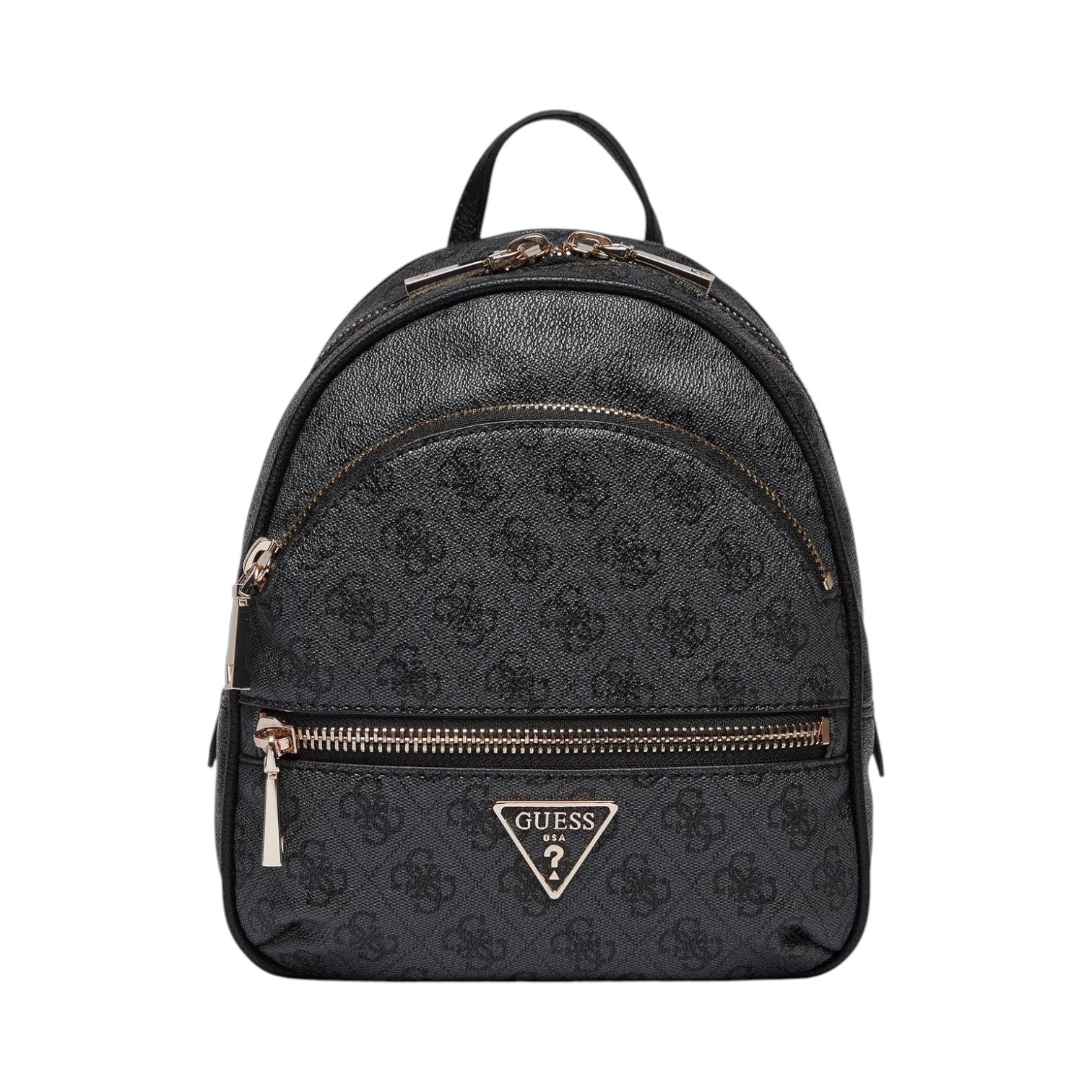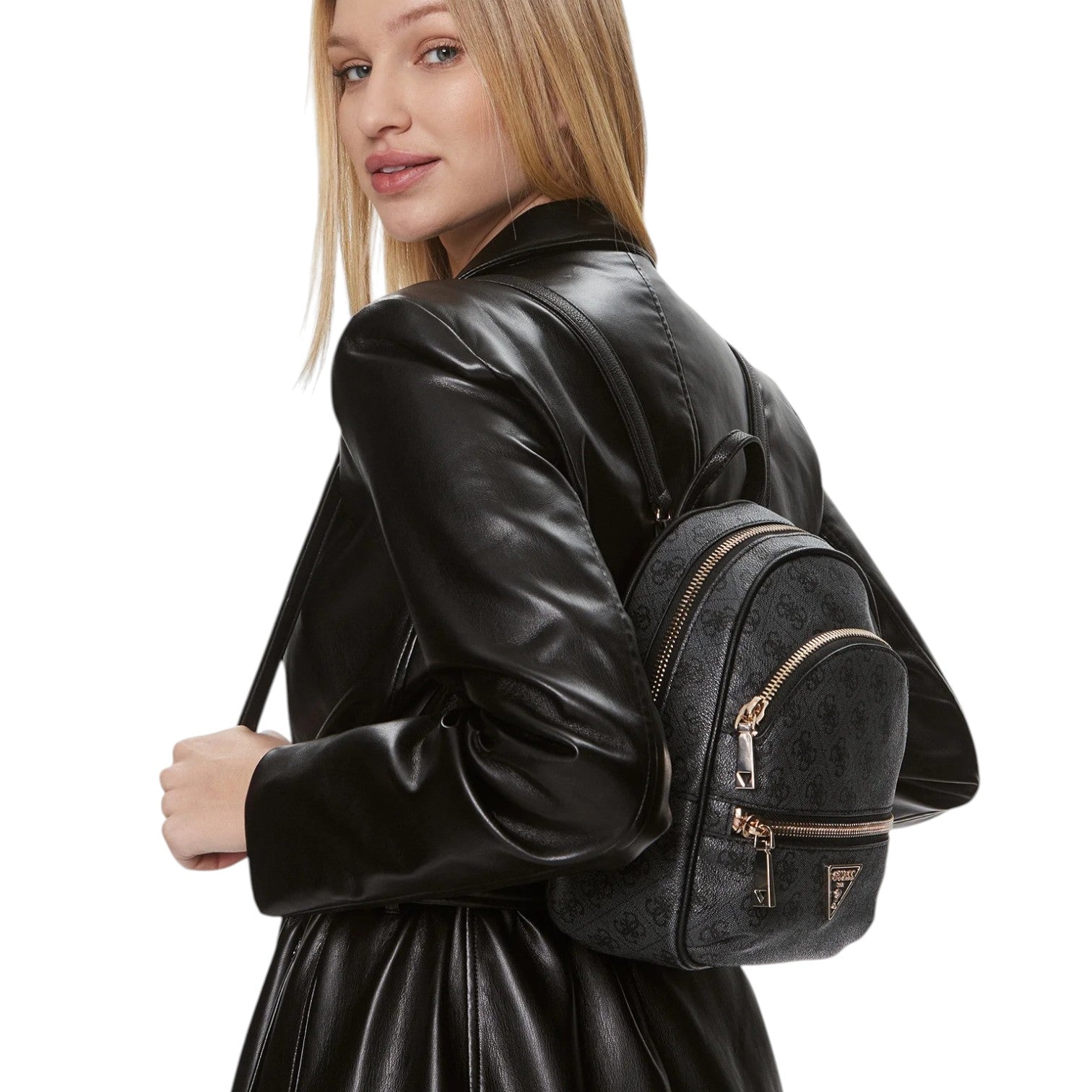 Lo Zaino firmato Guess, realizzato in ecopelle con stampa 4g logo unisce stile e praticità con la sua chiusura a zip, presenta due scomparti frontali con zip e l'interno foderato in tessuto logato di cui dispone di tasca con zip e due tasche aperte.