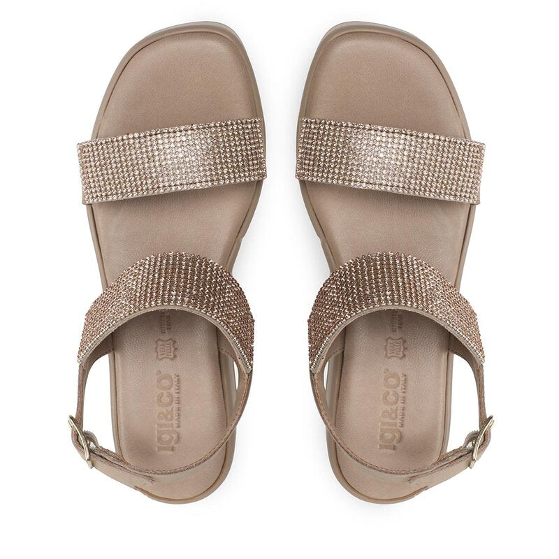 Igi&Co Sandalo tortora con fasce ricoperte di strass