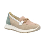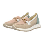 Il Mocassino firmato Igi&Co, realizzato in camoscio e tessuto di alta qualità, questo mocassino rosa beige offre un design unico, arricchito da dettagli multicolori che li rendono ideali per chi cerca un tocco distintivo nel proprio look. La fodera in tessuto e la soletta in pelle estraibile garantiscono un comfort ottimale durante tutto il giorno, mentre la suola in gomma offre stabilità e resistenza. La zeppa di circa 4cm dona un leggero slancio alla figura, mantenendo il massimo del comfort.