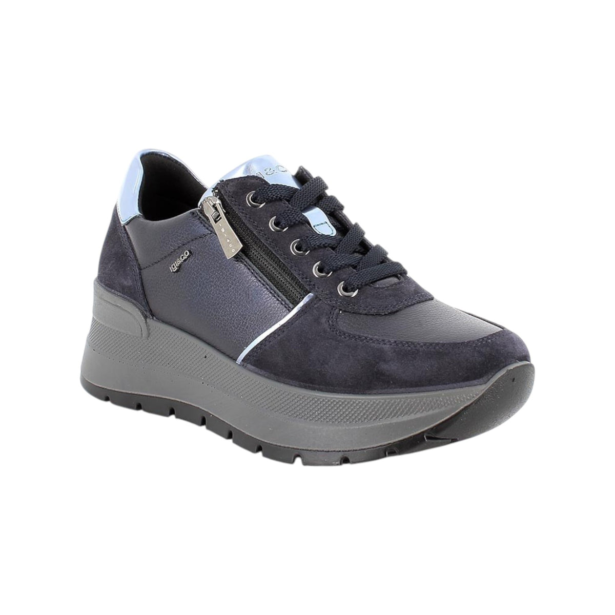 Igi&Co Sneakers Donna in Pelle e Camoscio Marrone Blu con Lacci e Zip Laterale