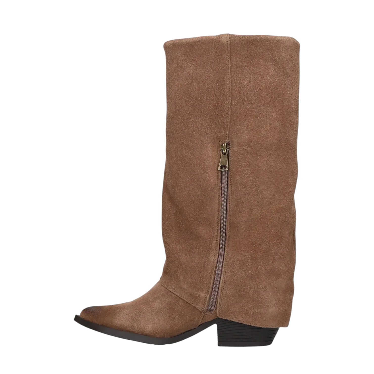 Ikaros Camperos Donna in Camoscio Tortora con Risvolto e Tacco Alto 50mm