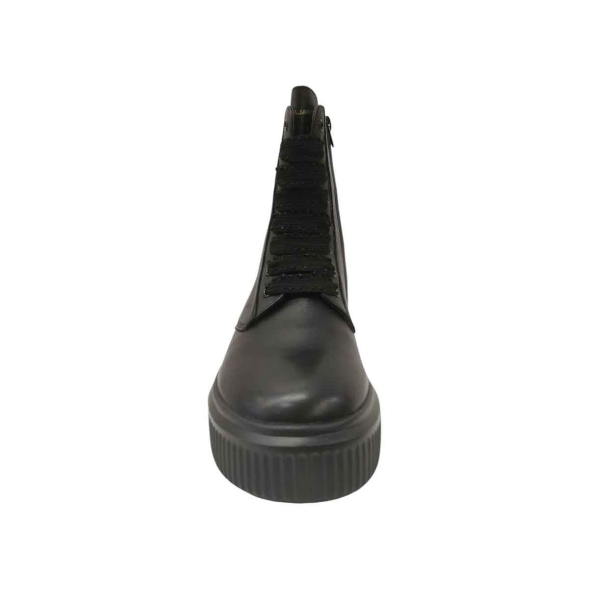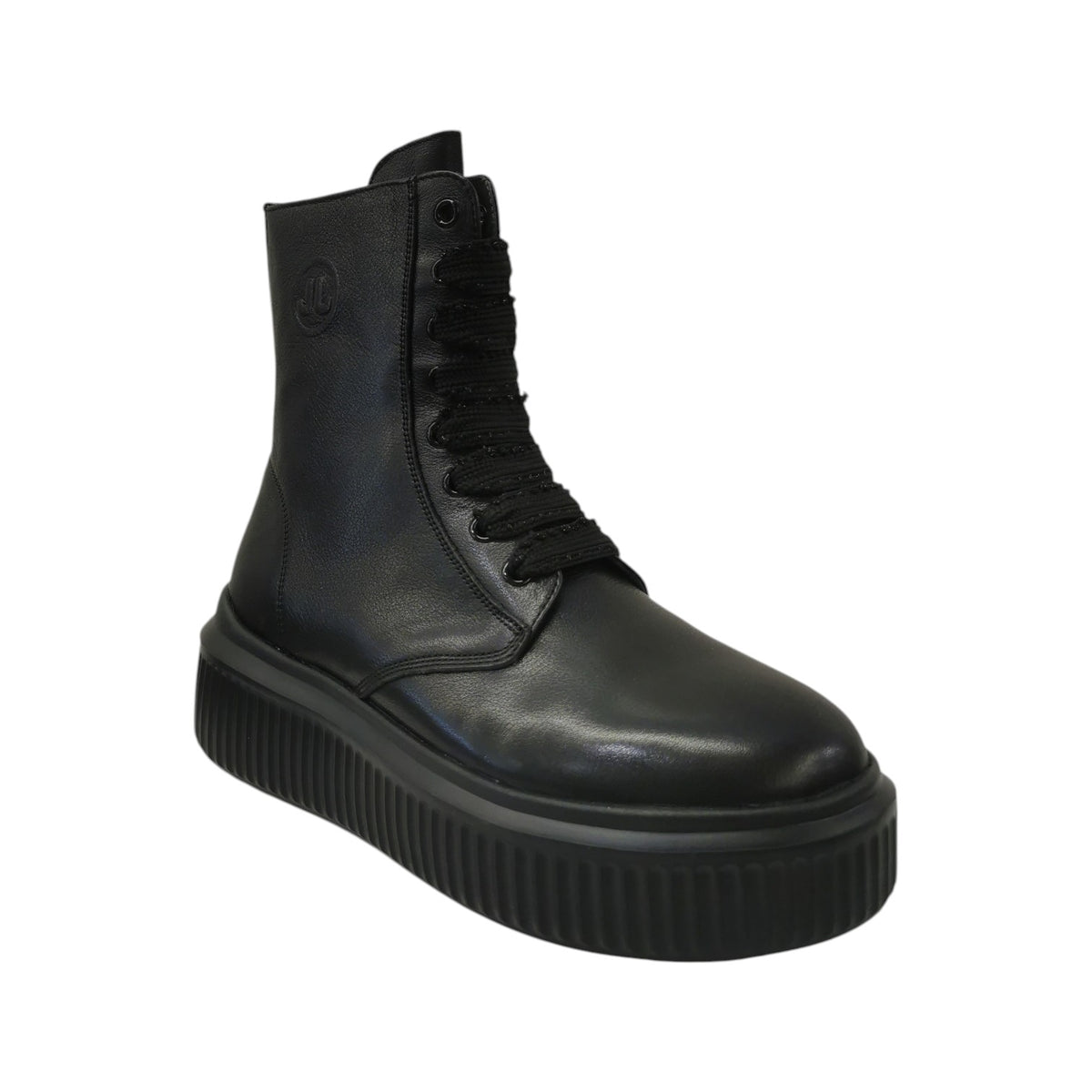 L'Anfibio firmato Janet&Janet, realizzato in morbida pelle qui proposto nella variante nera è caratterizzato da comodissimo plantare estraibile e fodera interna in vera pelle, con platform ammortizzato.