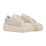 Janet&Janet Sneakers Donna Platform in Pelle e Tessuto Traforato Beige Bianco