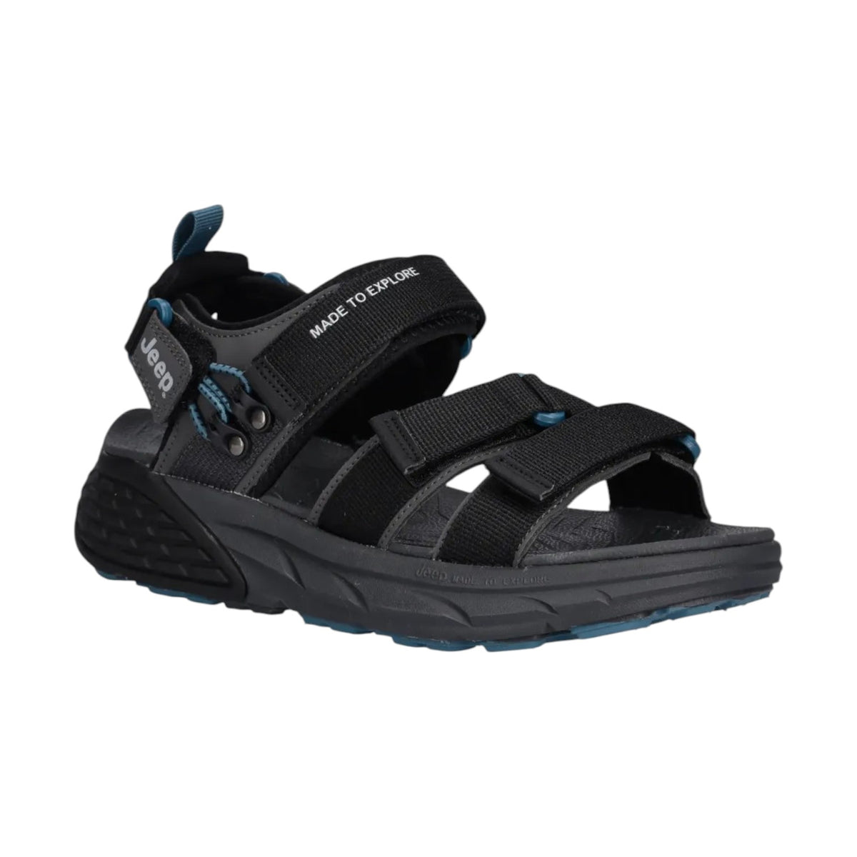 Jeep Sandalo Uomo in Tessuto Nero con Doppio Strappo