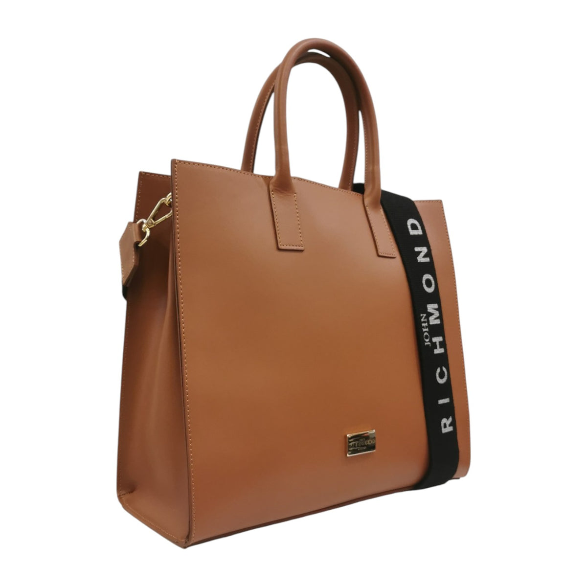 John Richmond Borsa a Mano Grande Donna in Pelle Cuoio Oro con Tracolla in Tessuto Logo
