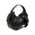 John Richmond Borsa a Mano S Donna in Pelle Nera e Metalleria Oro con Tracolla in Tessuto Logo
