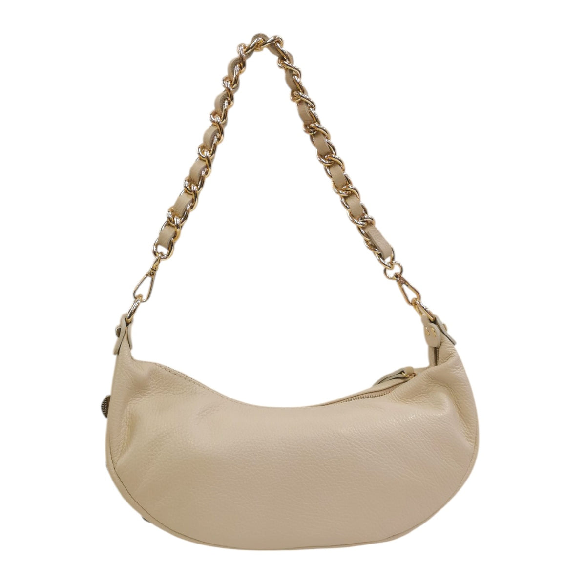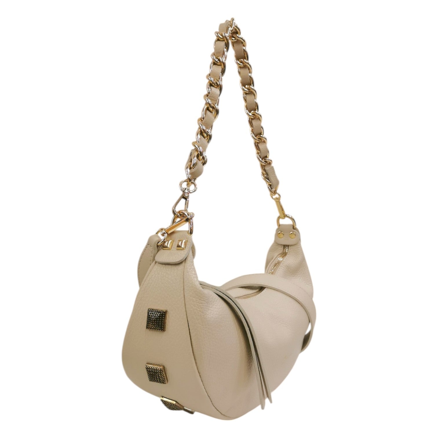 John Richmond Mezzaluna Donna con Manico Catena in Pelle Ecru con Borchie