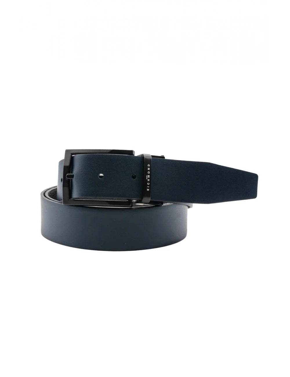 La Cintura firmata John Richmond, realizzata in saffiano è caratterizzata da scritta bianca logata sul passante e da fibbia nera opaca modello double face.