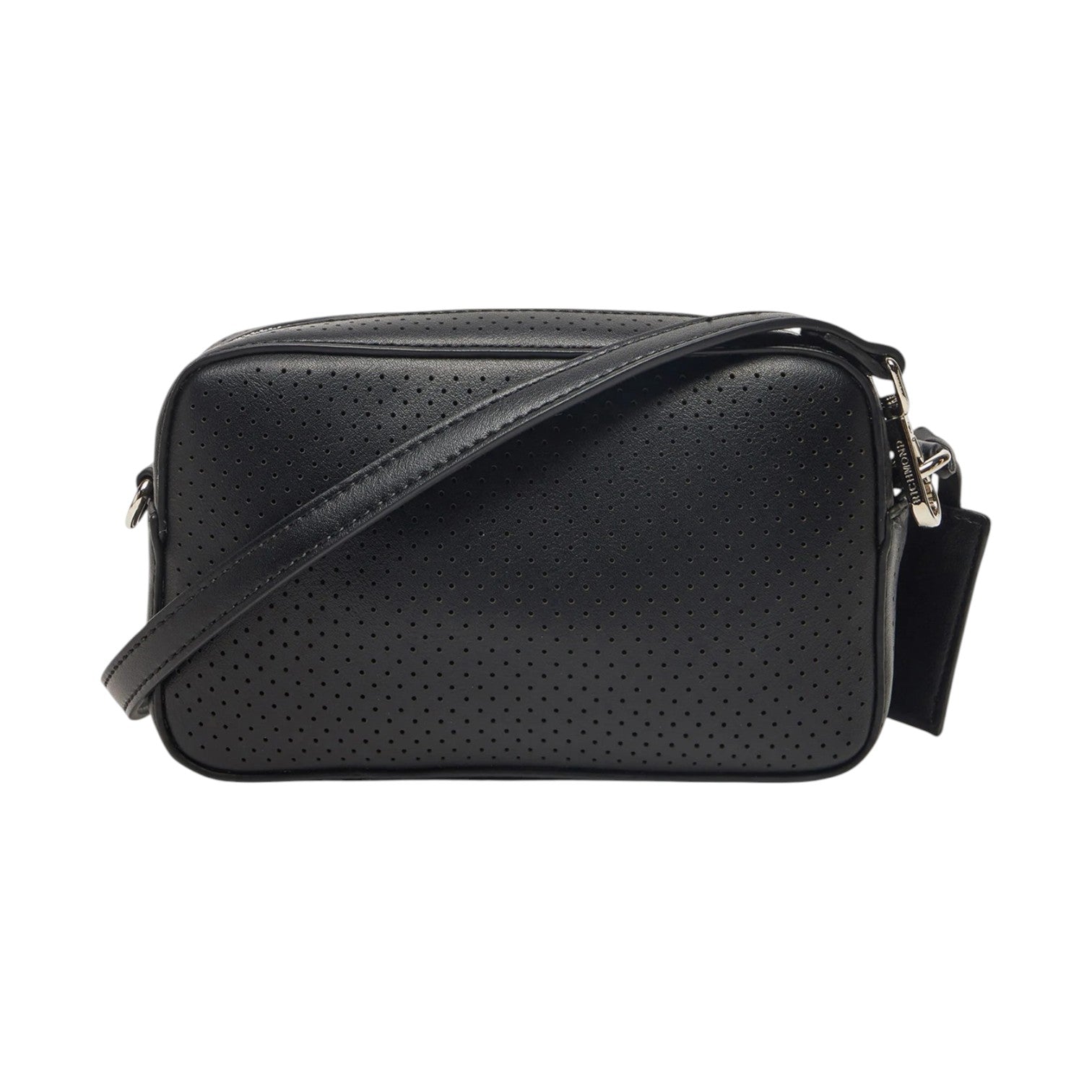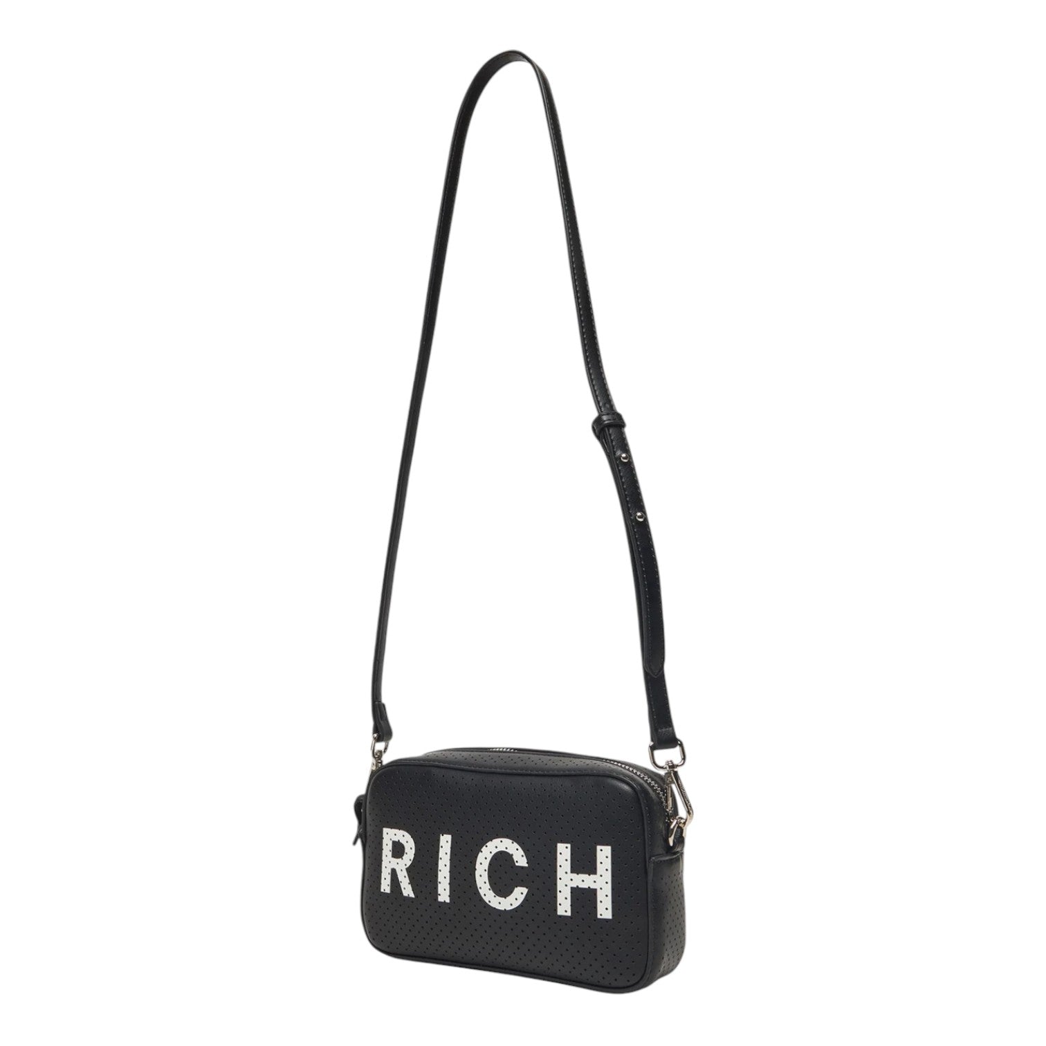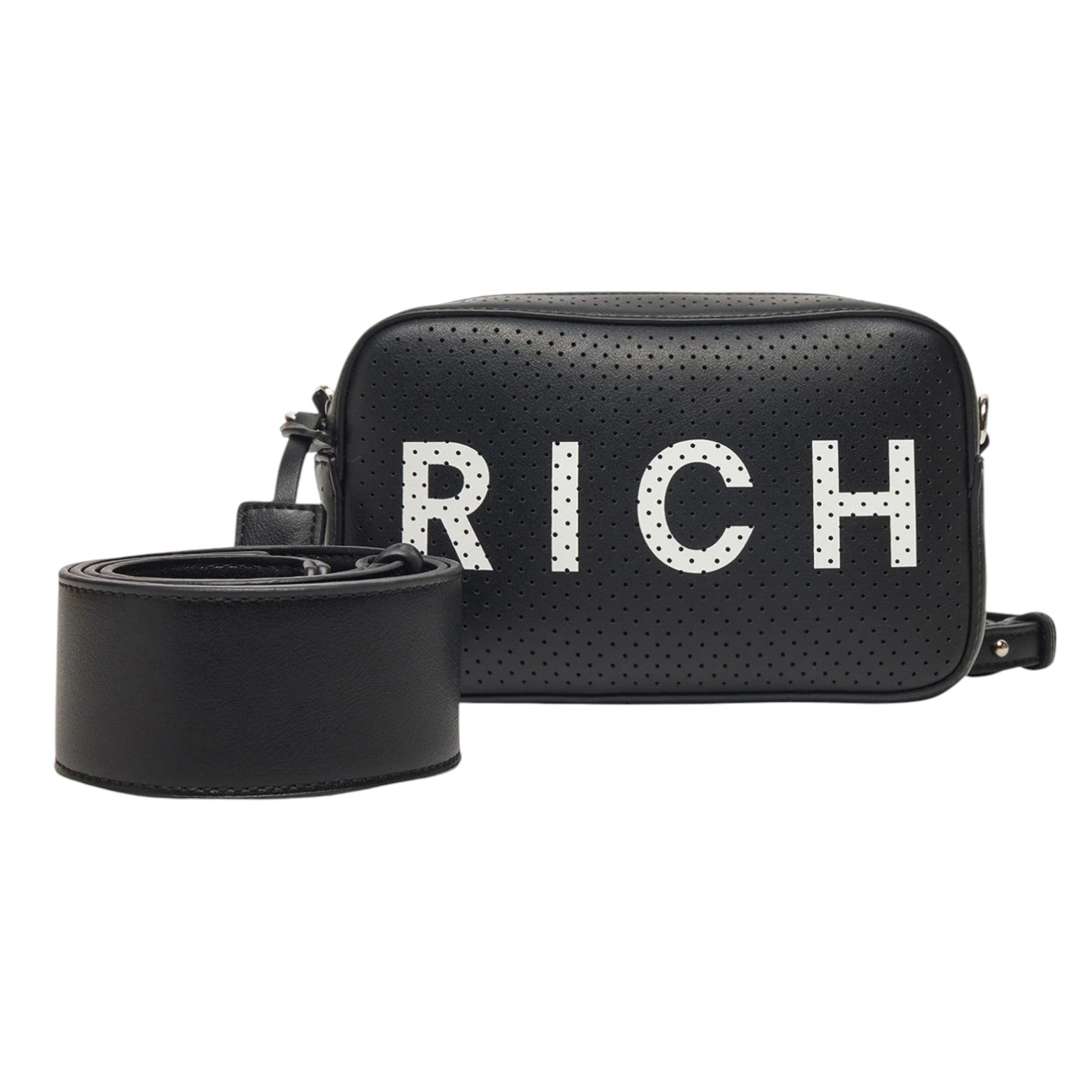 La Camera Bag firmata John Richmond, realizzata in ecopelle si distingue per la sua texture traforata con piccoli fori e la scritta “RICH” in caratteri a contrasto, che le conferisce un design contemporaneo e audace. Dotata di doppia comoda tracolla, è ideale per essere indossata a spalla, offrendo praticità senza rinunciare allo stile.
