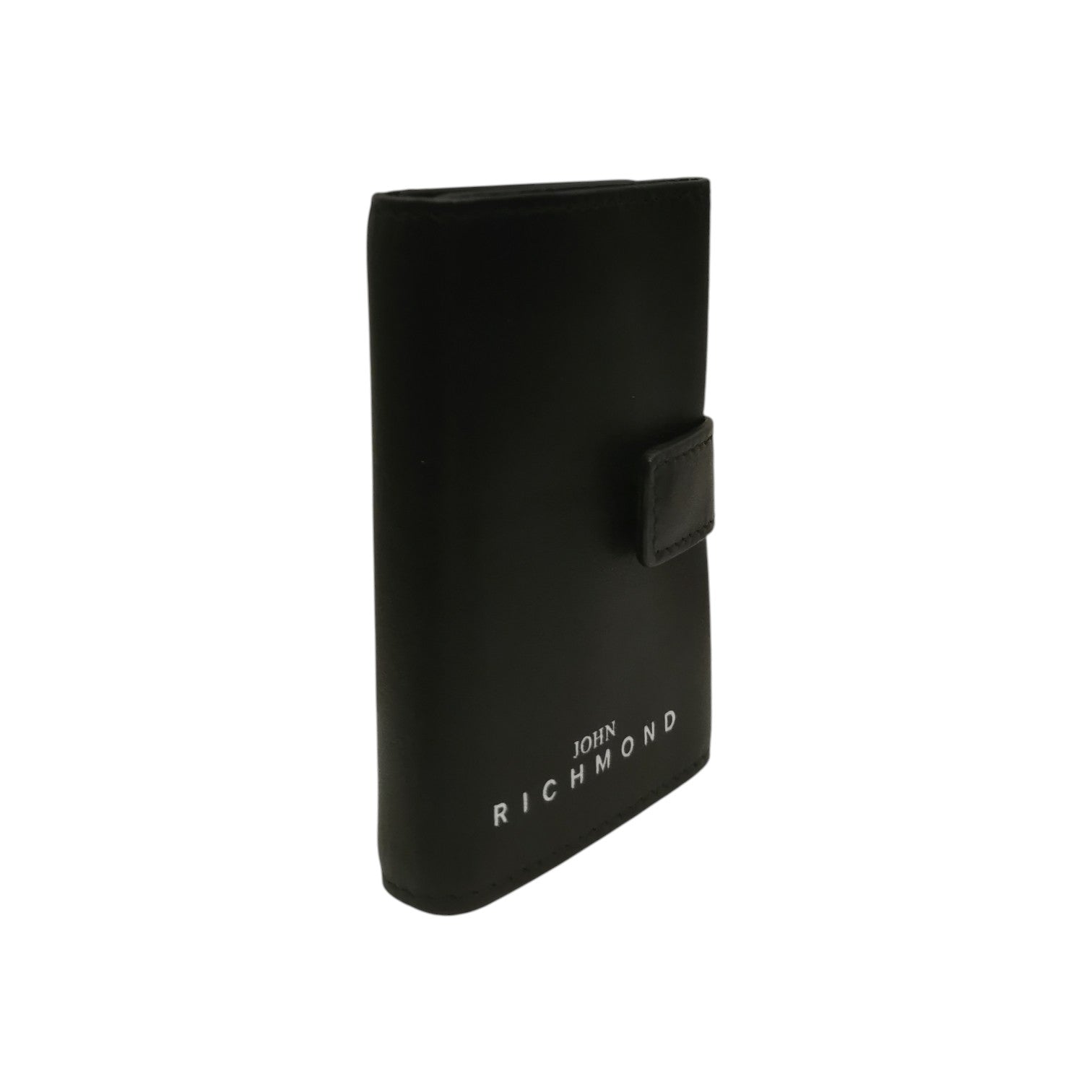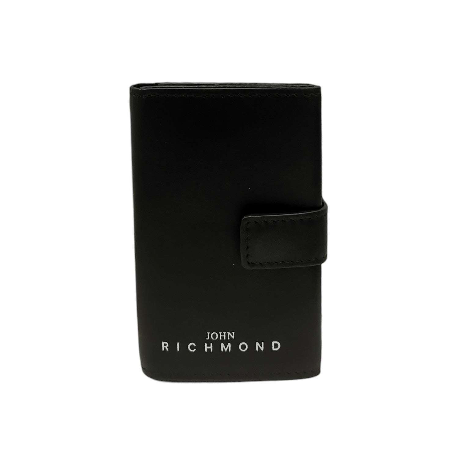 John Richmond Portacarte Uomo in Pelle Nera con Clip e Logo Bianco